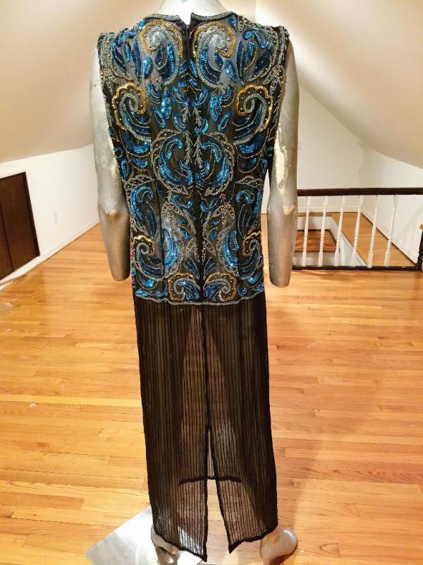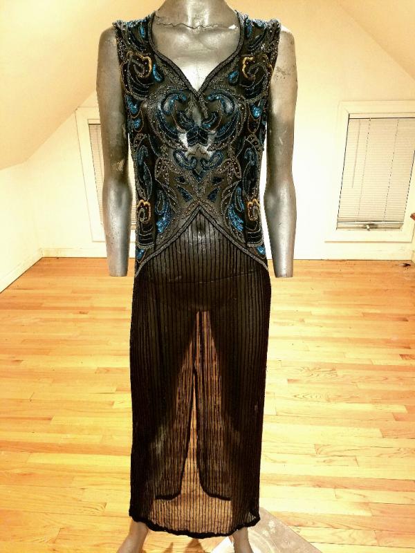 An original beauty Circa 1960's . Silk chiffon with amazing hand beaded work of Wearable Art. In very good vintage condition.