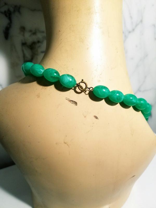 Vtg 1940's Celluloid Necklace green spring beads brass closure