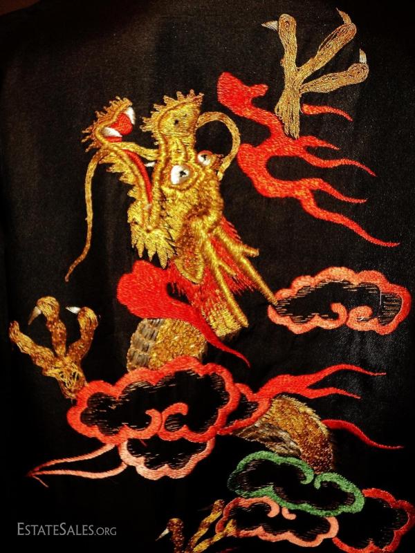 From an estate of a soldier stationed in China . Amazing kimon with stunning actual gold and silver thread hand embroidery..