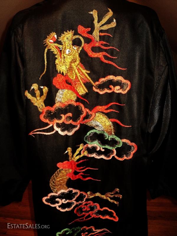 From an estate of a soldier stationed in China . Amazing kimon with stunning actual gold and silver thread hand embroidery..