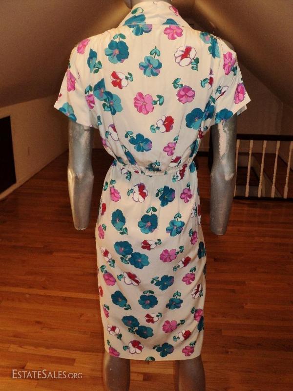 This one is a beauty from the late 1940's fluid silk lined and hand finished bodice and front tie , side slits with hidden pockets. dolman kind of sleeve. In very good vintage condition and a beauty