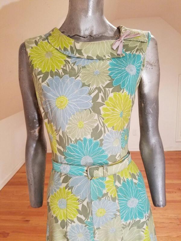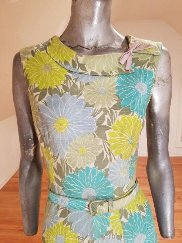 Stunning 1940's day dress Marguerite floral print with buckle belt