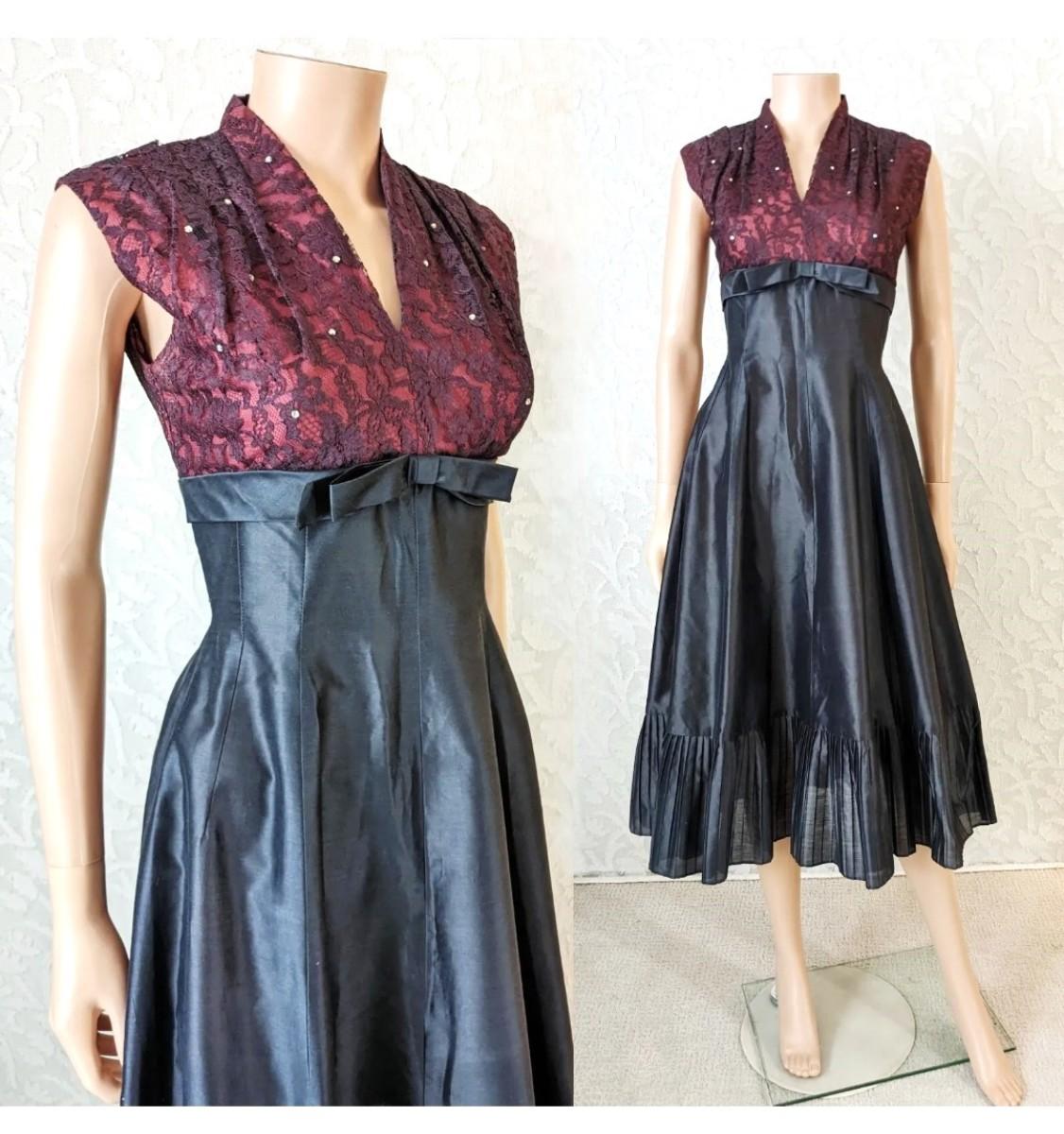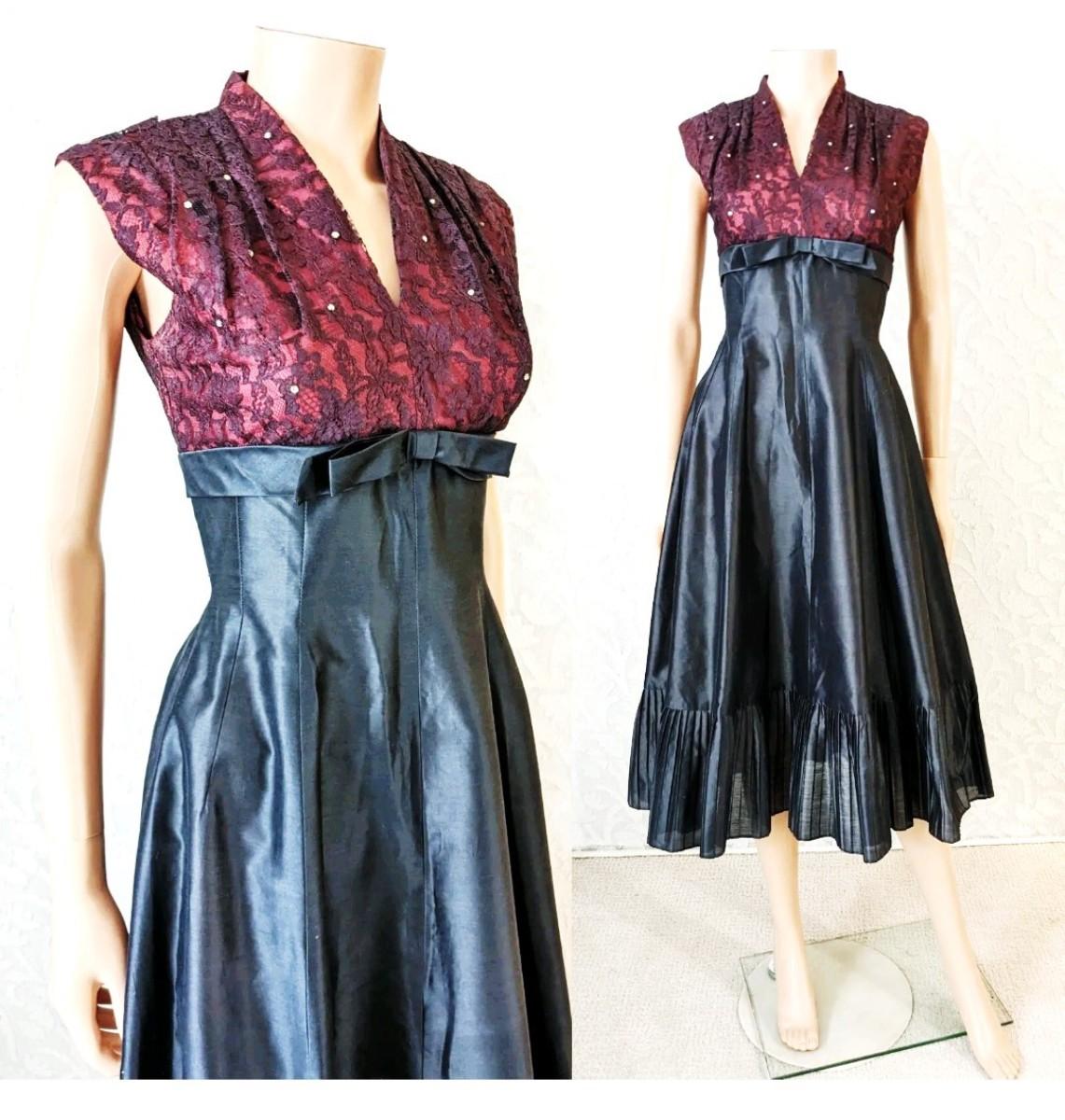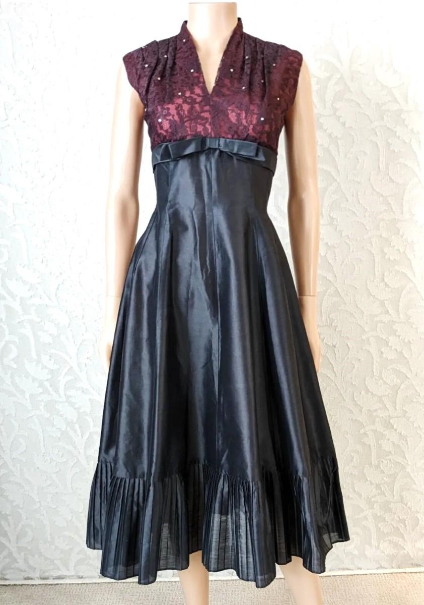 Stunning Dress dark Charcoal & Copper Lace with Rhinestones