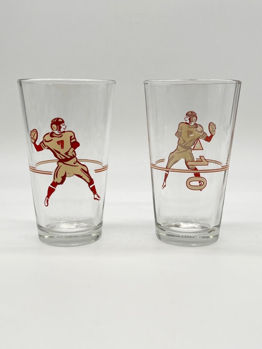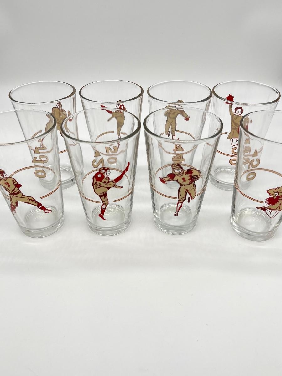 Vtg. 1950’s Football Pint Glasses ~ Set Of Eight (8)