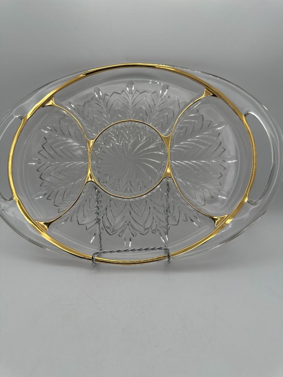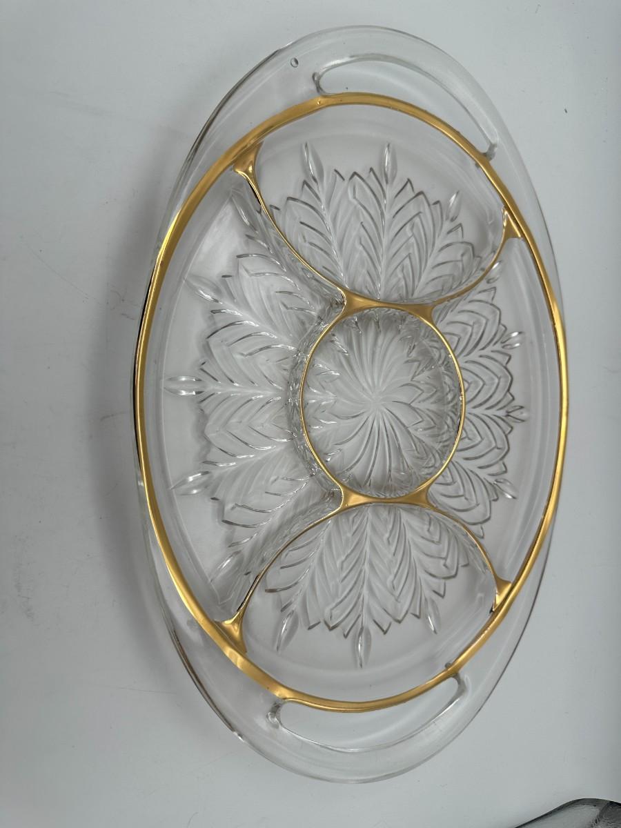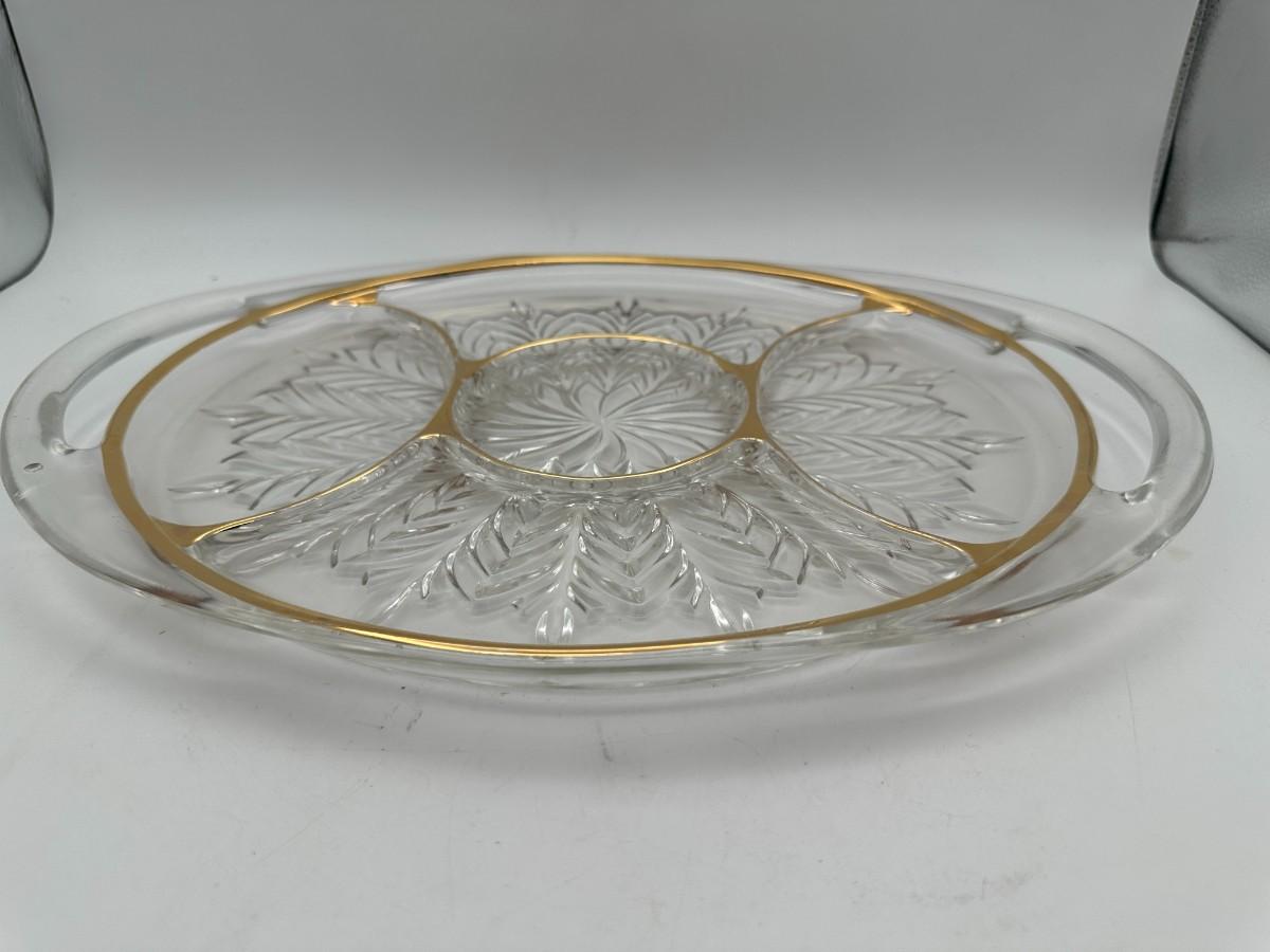 Vtg. 1950's Glass & Gold Lazy Susan & Relish Dish