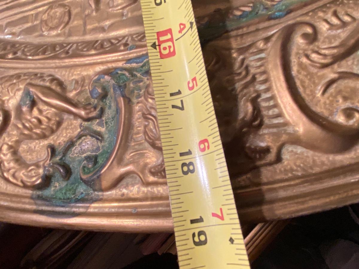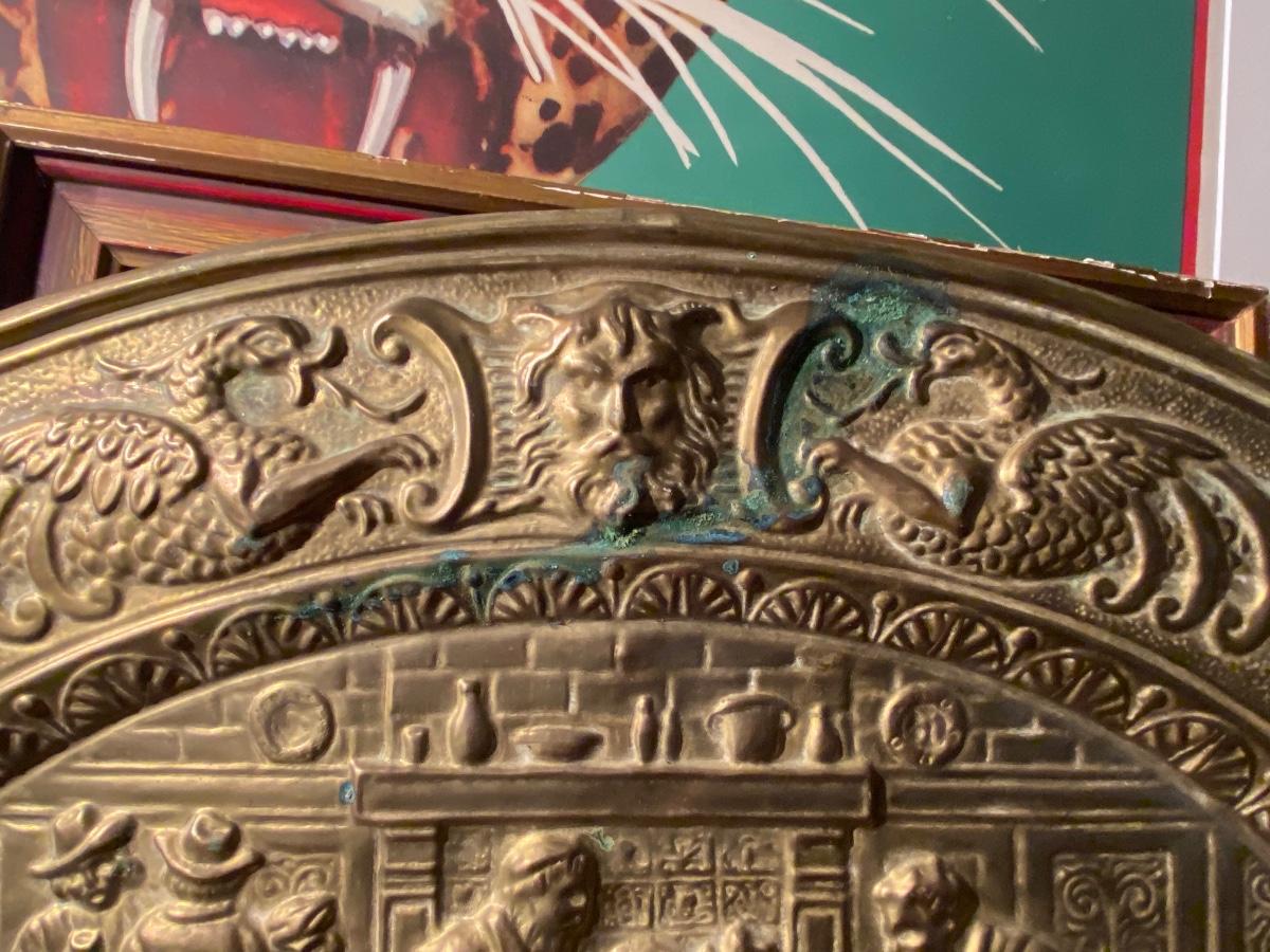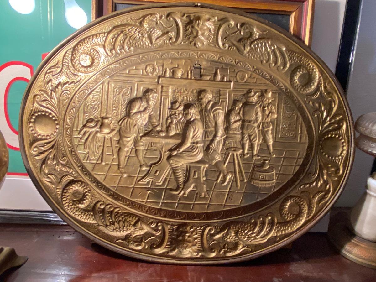 VTG 1950s PEERAGE BRASS WALL PLAQUE / PLATE 25'' x 19", extra dose of patina as shown in photo