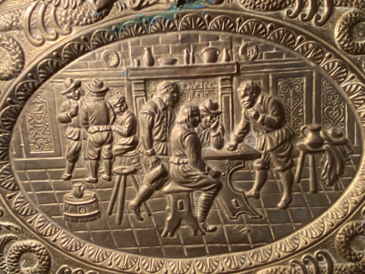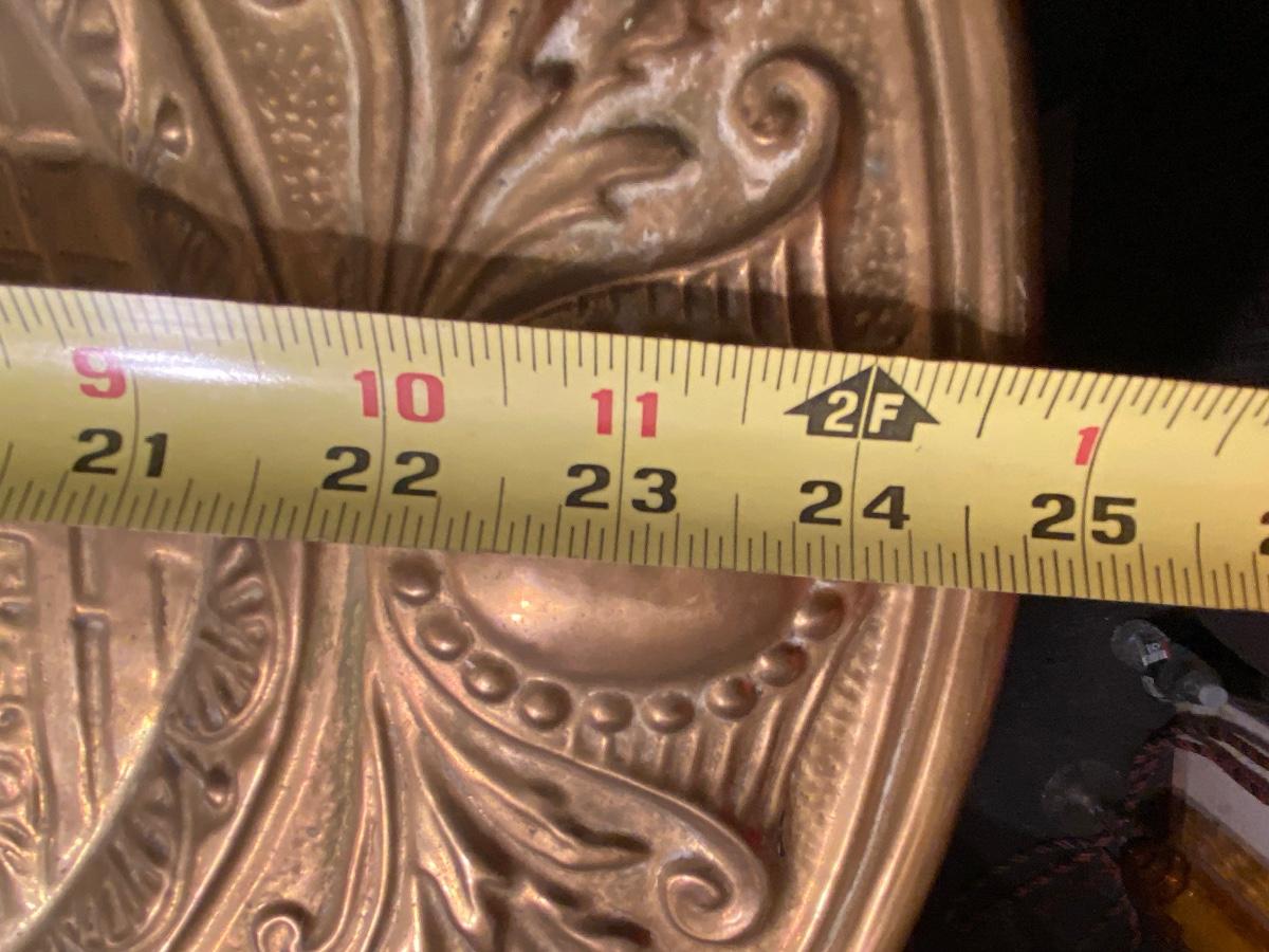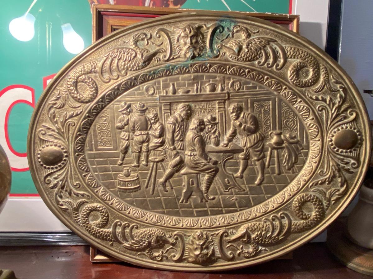 VTG 1950s PEERAGE BRASS WALL PLAQUE / PLATE 25'' x 19", extra dose of patina as shown in photo