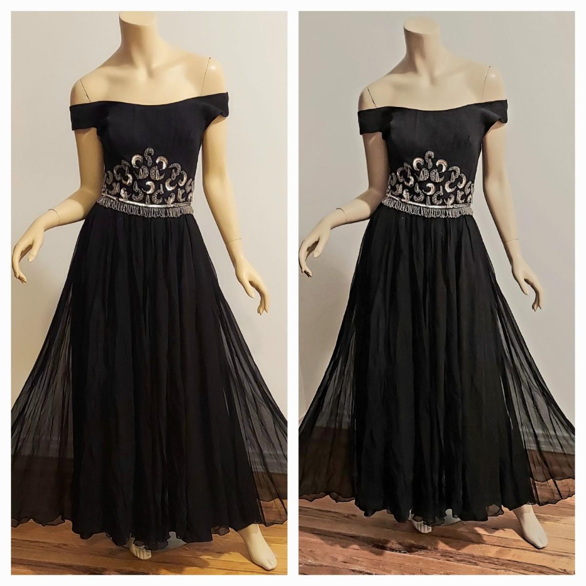 Vtg 1950s Silk Chiffon Embellished Cocktail dress