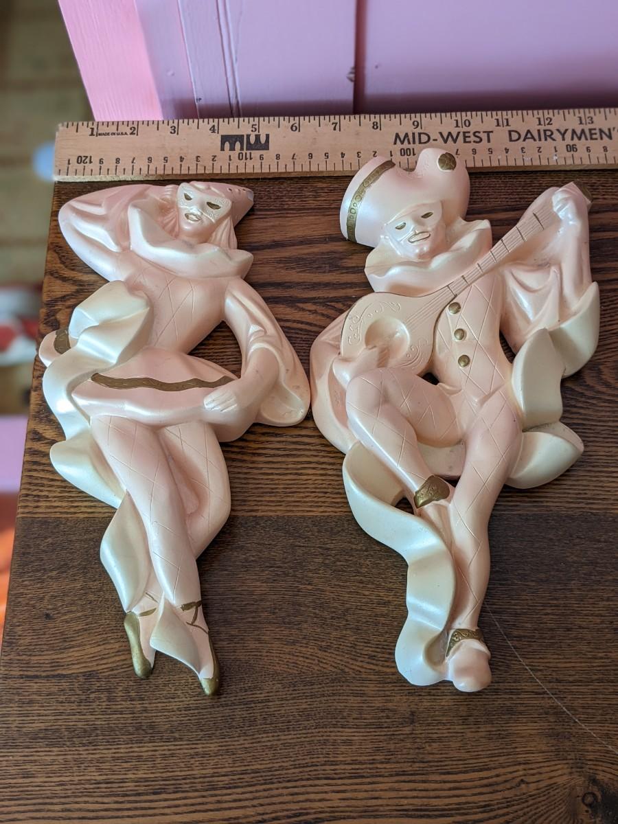 Vtg 1960 Miller Studio Pink and Gold Harlequin Wall Plaques