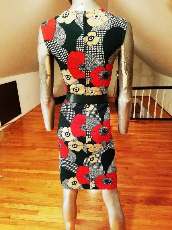 Forever Young by Puritan stunning wiggle dress.Floral painted print adorned by a leather belt with tortoise buckle. Amazing vintage condition. And very Collectible