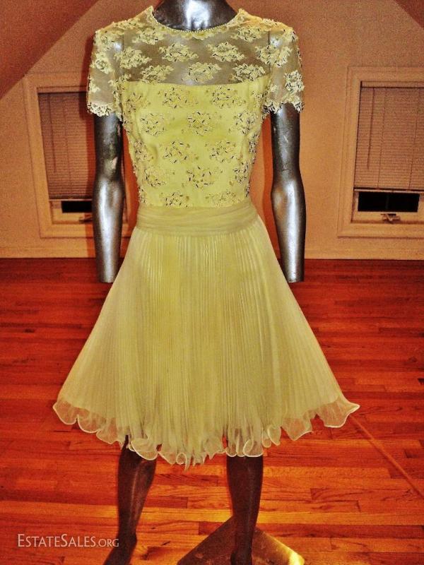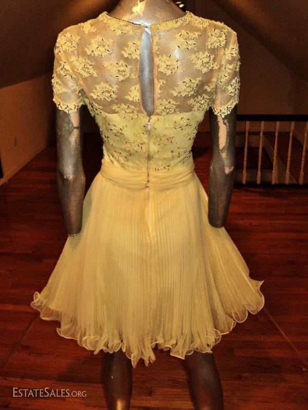 Vtg 1960's Jack Bryan lace beads pencil pleats fluid dress Hong Kong