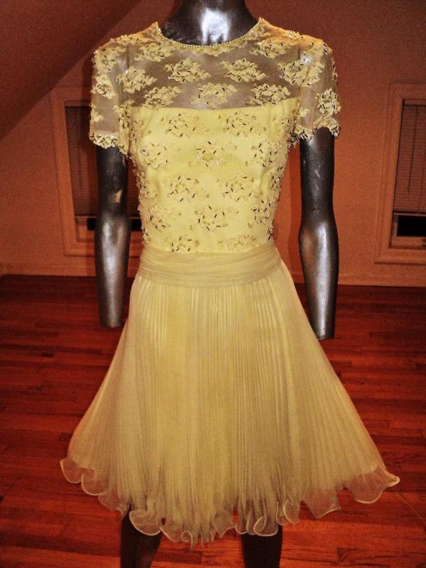 Top is all lined to form a sweetheart look all beaded , the skirt is all pencil pleated and fluid.