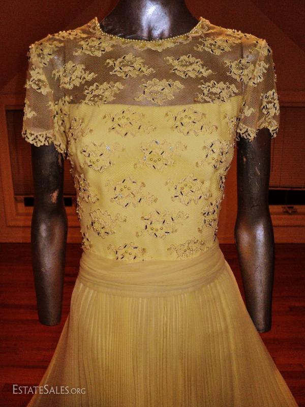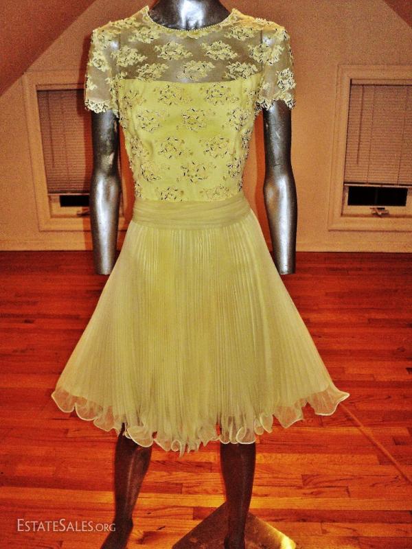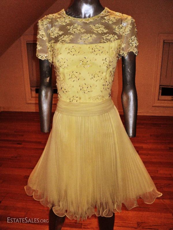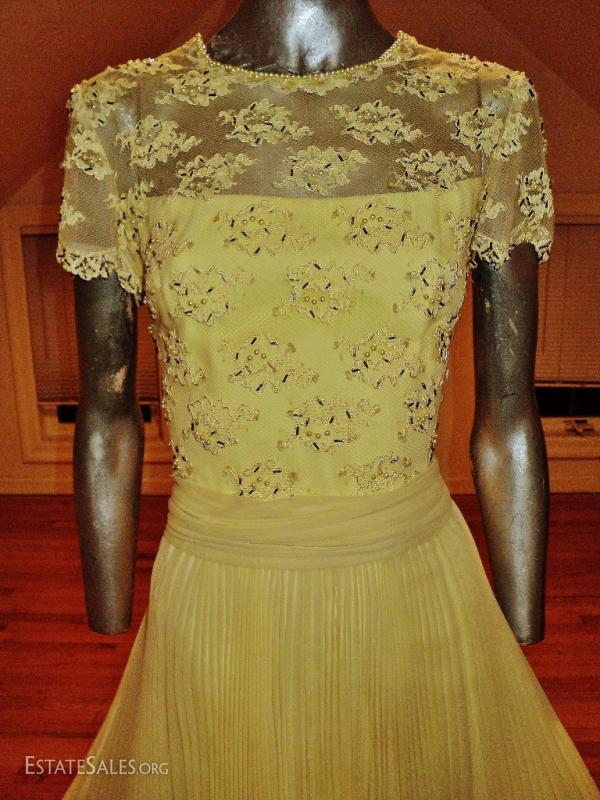 Top is all lined to form a sweetheart look all beaded , the skirt is all pencil pleated and fluid.