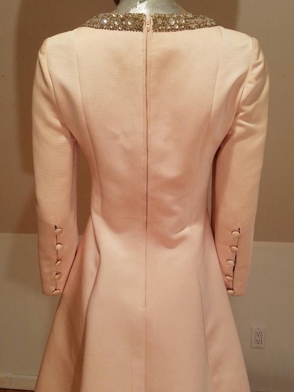 An original beauty Circa 1960's . Trapeze embellished brocade dress with amazing hand beaded work of Wearable Art. In very good vintage condition.. May need some refresh clean