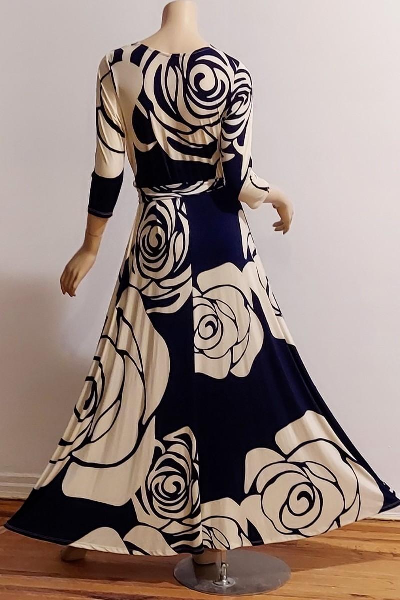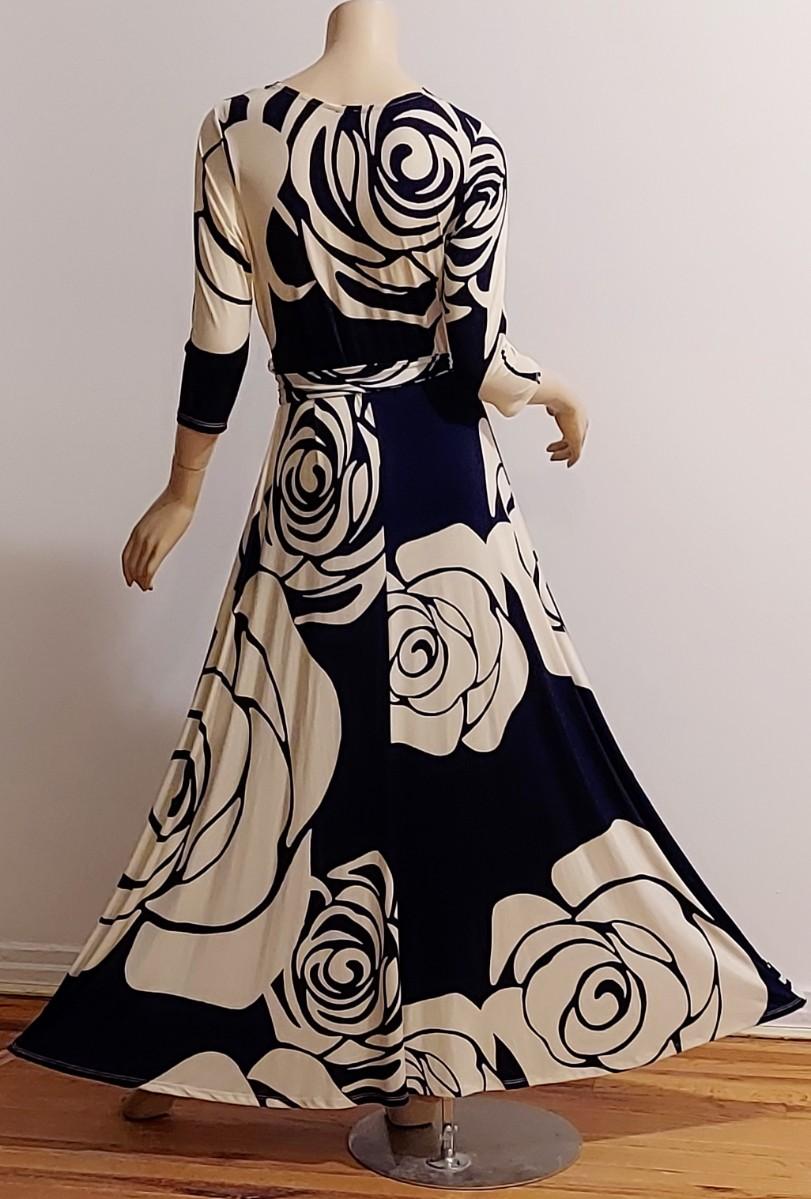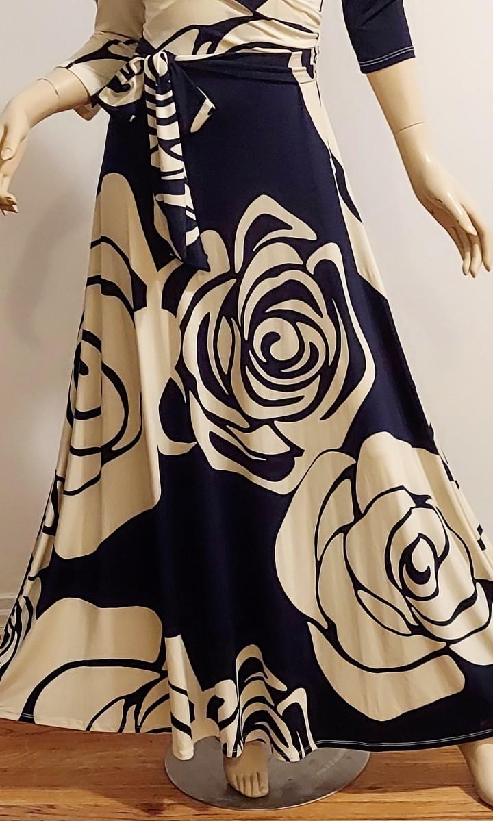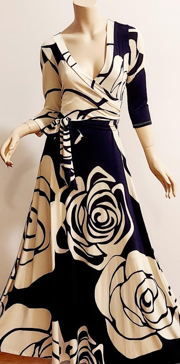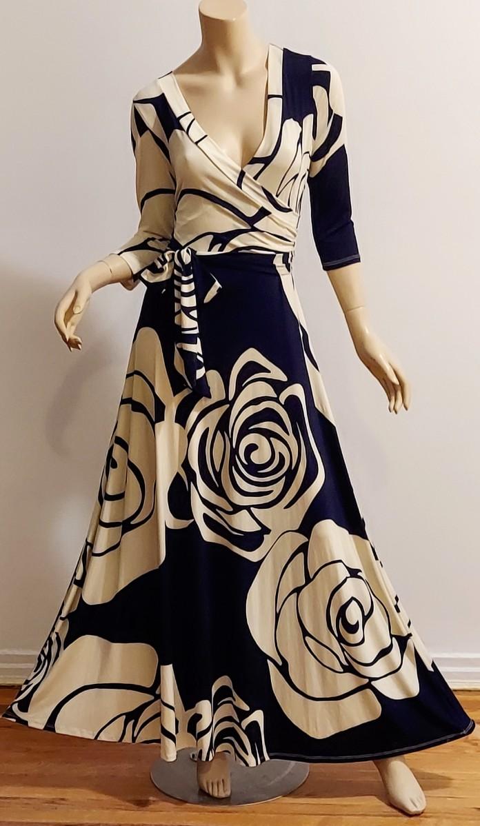Stuning Large roses poly jersey Maxi Hostess dress Front cross over V. Amazing hand printed Design.