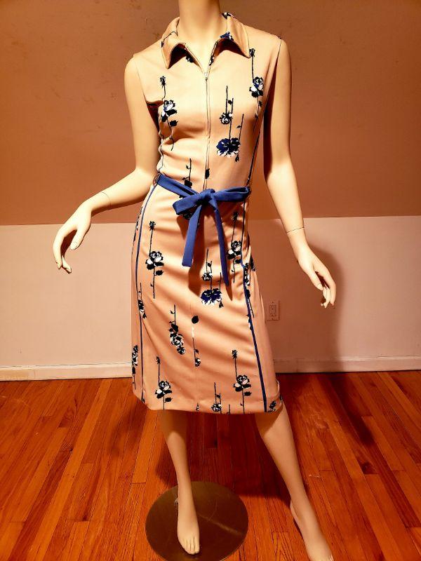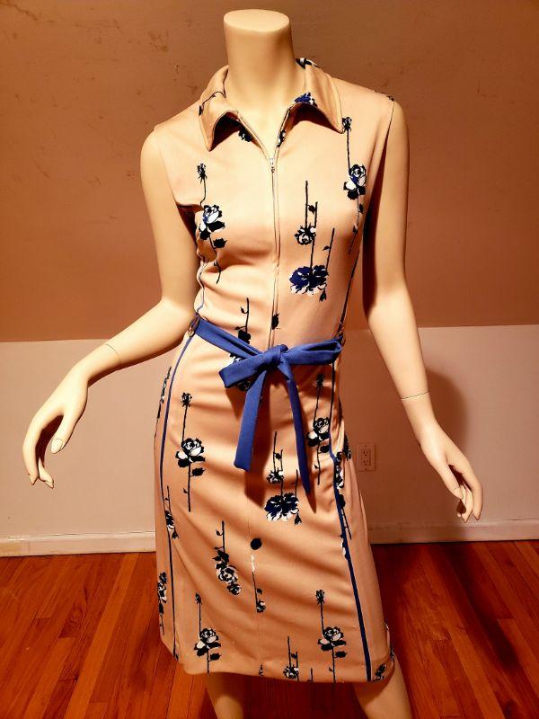 very beautiful wiggle dress from the 1970's E ra. In very good vtg condition ,may need refresh ., it is a zip front.