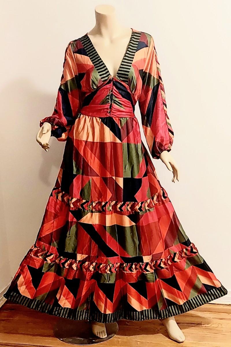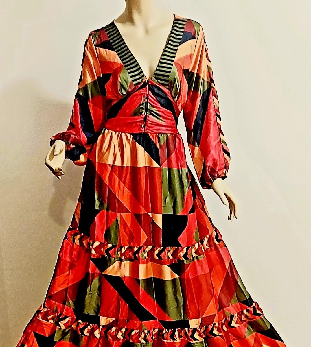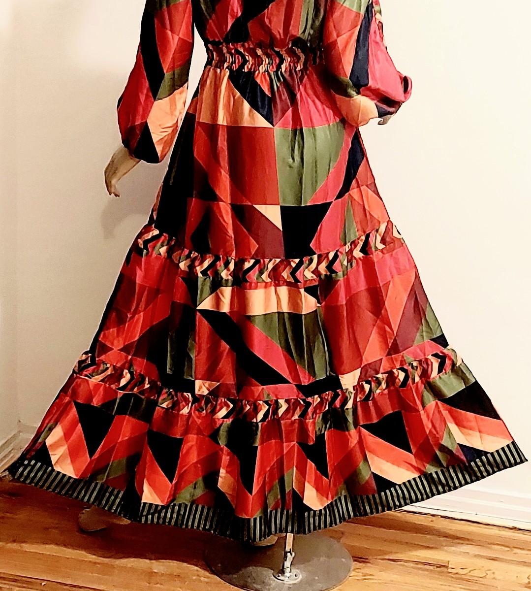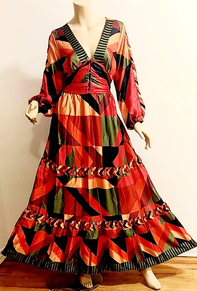 This one is Absolutely Stunning. Boho Chic Fit and Flare fluid color Block Maxi