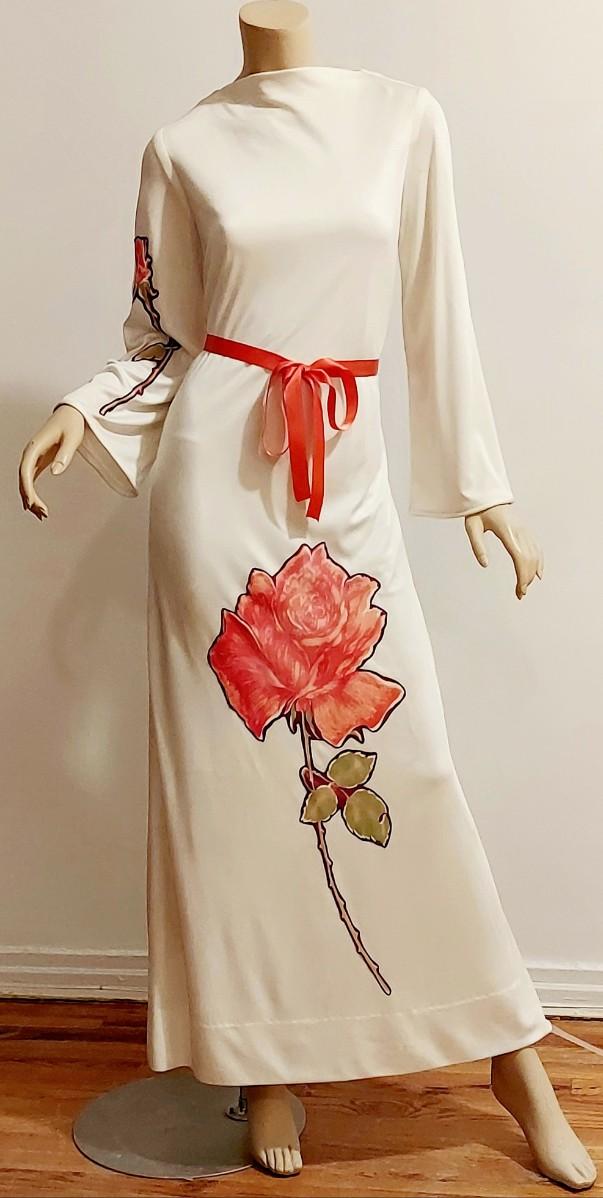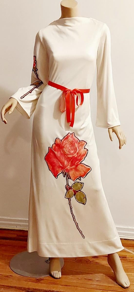 This one is very rare and Very Beautiful .An Original Lilli Diamond Treasure Maxi Hostess Gown with Rose Sewn Emblems. Double Jersy this Gown is a. Wearable Art on its iwn and very hard to come by. A true Collector's Dream.