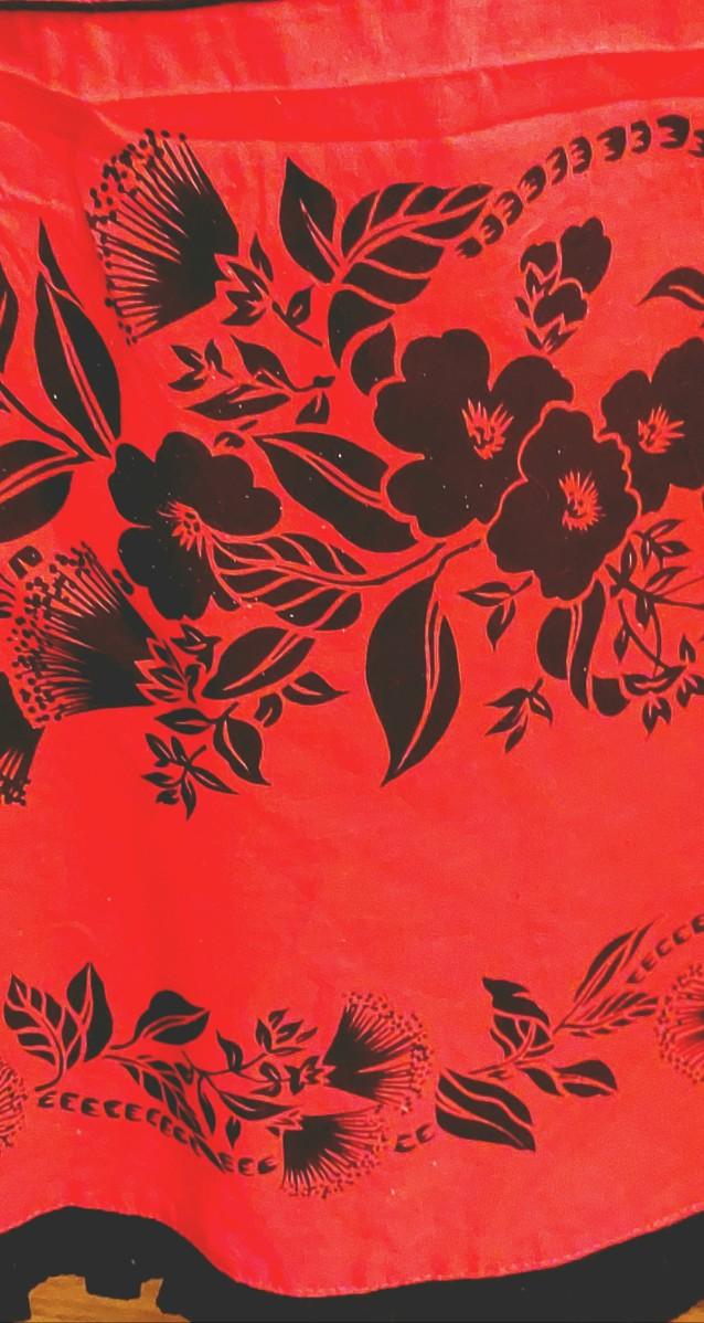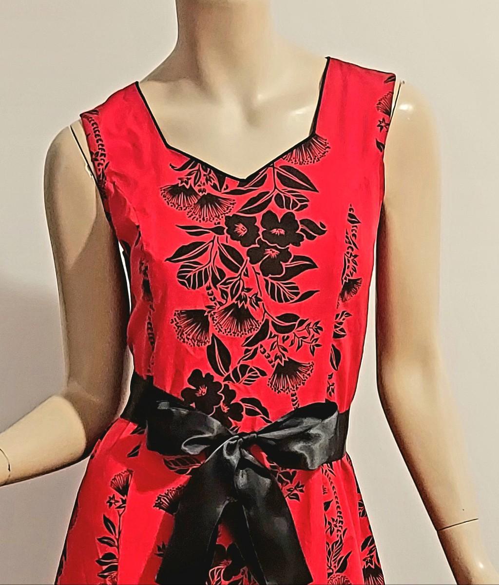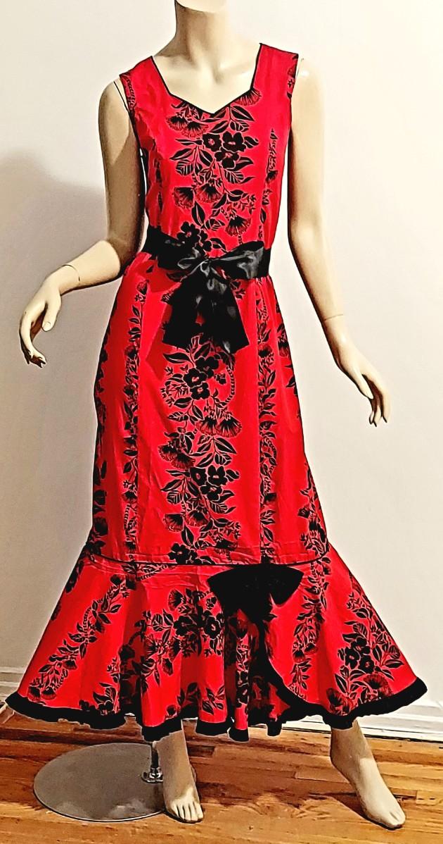 Vtg 1970s Lipstick Red, Cha Cha Hawaiian Maxi dress