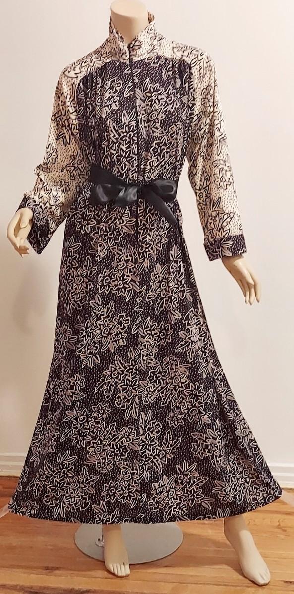 Vtg 1970s Maxi Hostess Gown with Front Zip and Sash