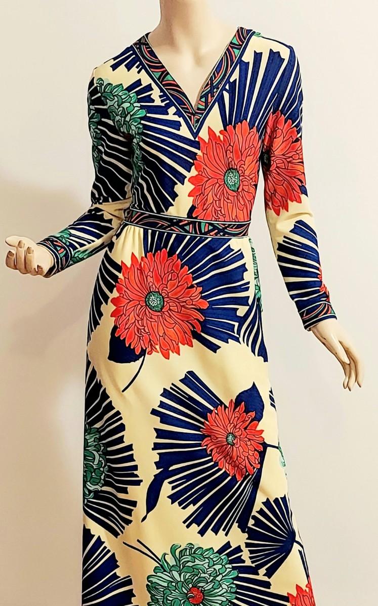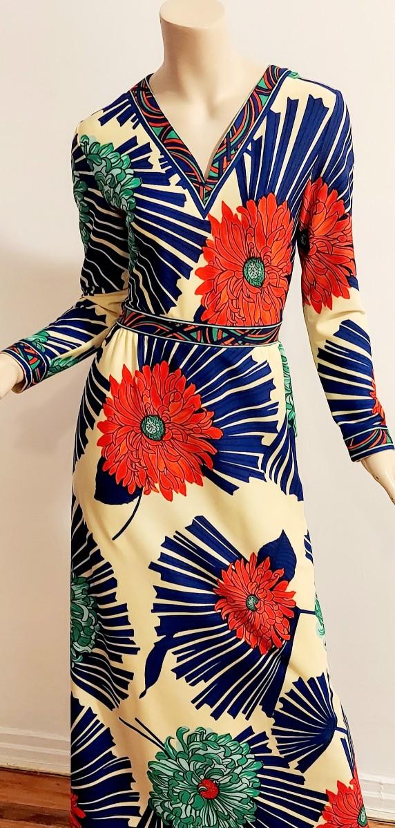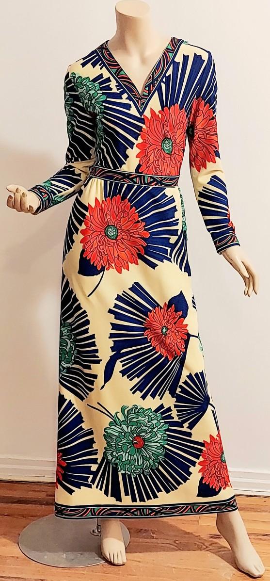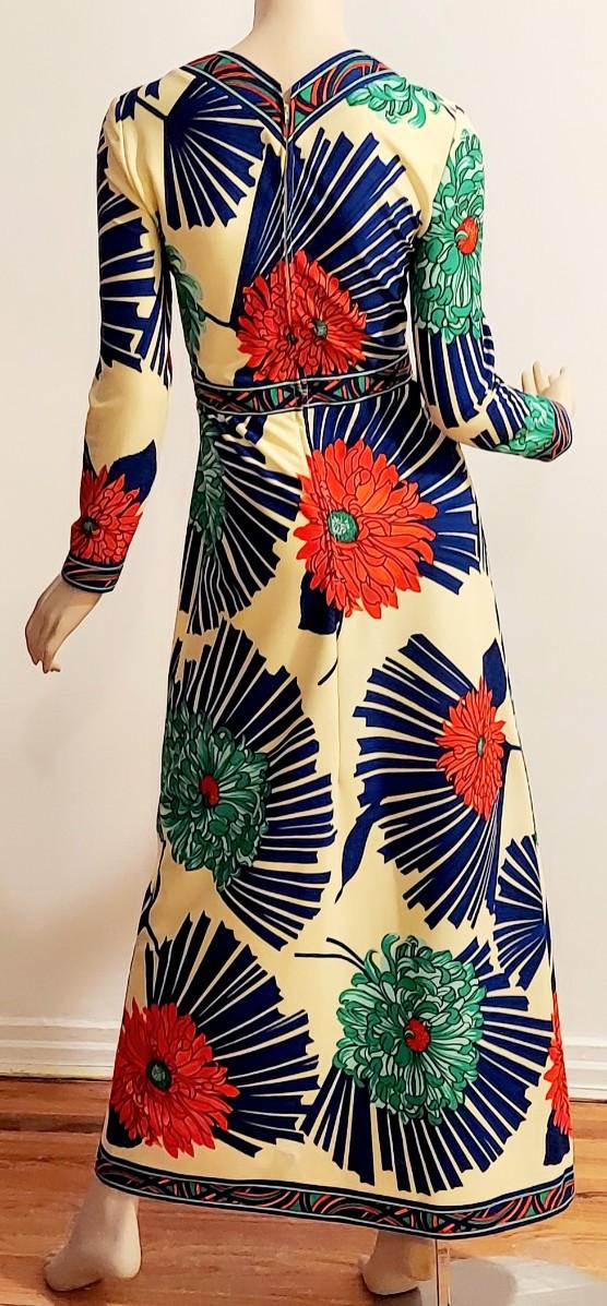 Vtg 1960s Mr Robert Abstract Floral print Maxi dress Bold Colors