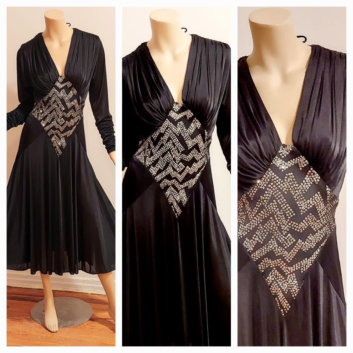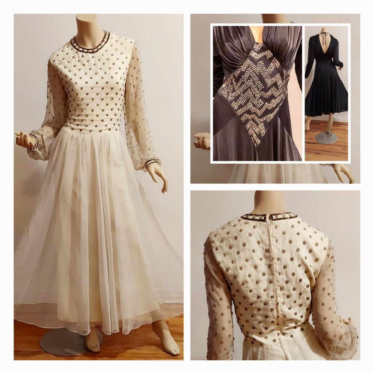Truly Rare and an Amazing Beauties Both by Jack Bryan one is Full sweep Maxi chiffon with piet Sleeves Embellished all over with beads. This one is M/L