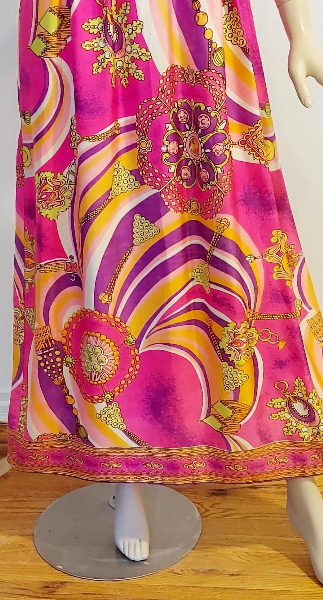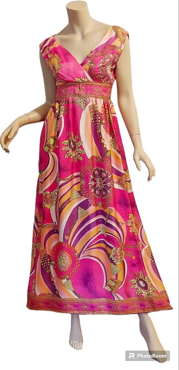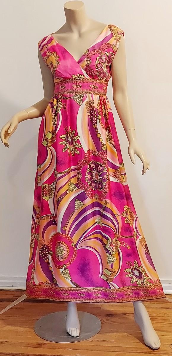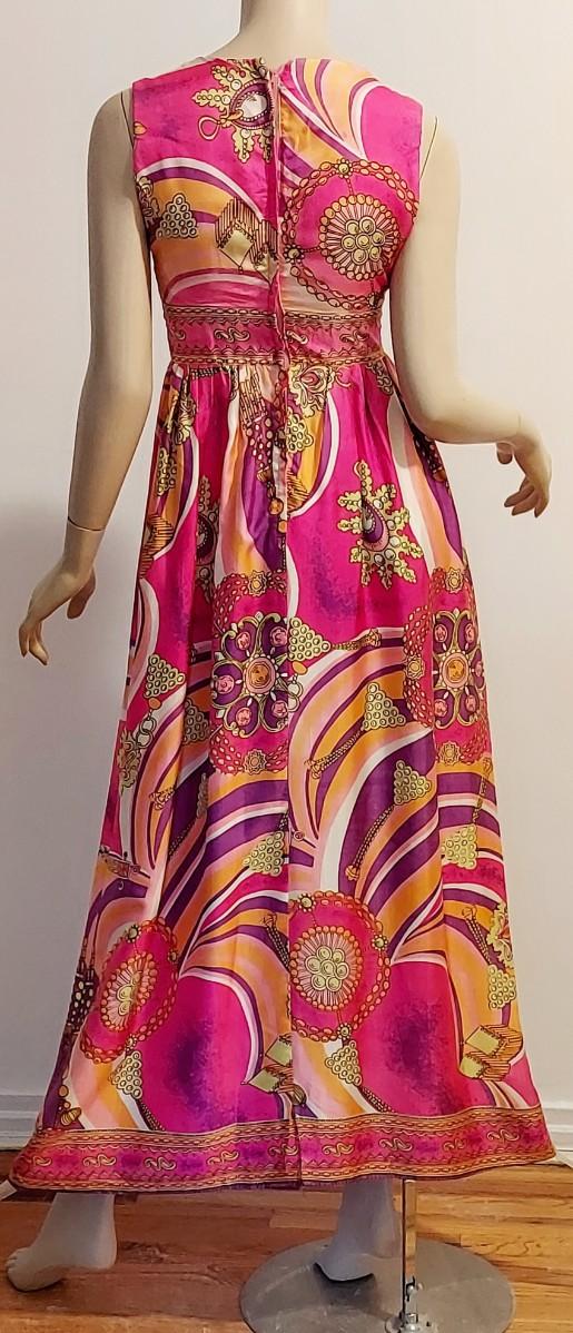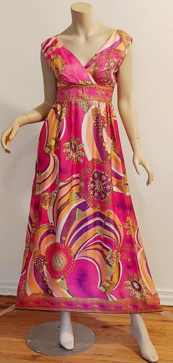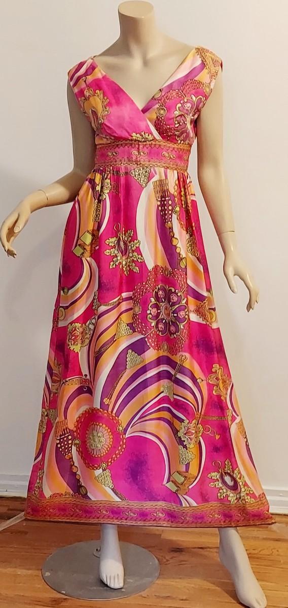 Plunge V front ,back Zipper Empire Waist Hostess dreamy Swirl Design.