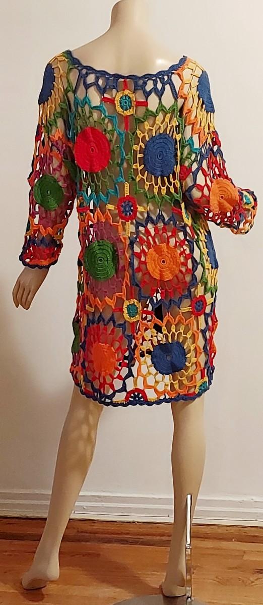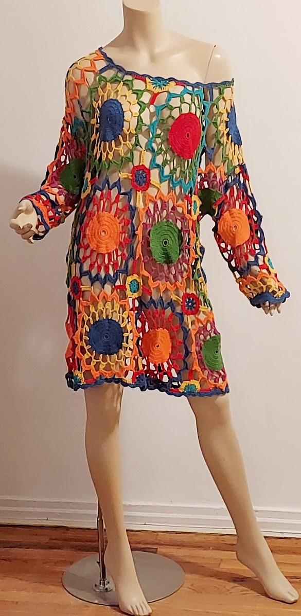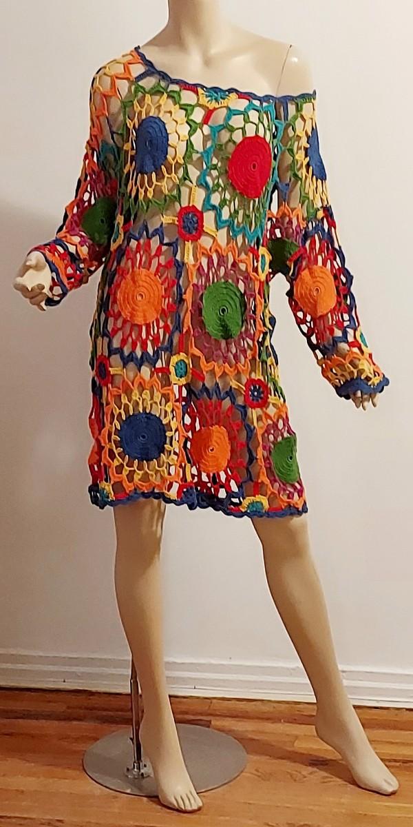 Vtg 1980s Hand Crochet Mini or long Tunic dress