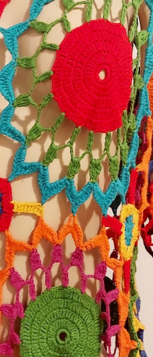 Vtg Amazing and Gorgeous colorful Hand Crochet .Patchwork in a 60-70s look. This one is so unique and Amazingly Stunning.