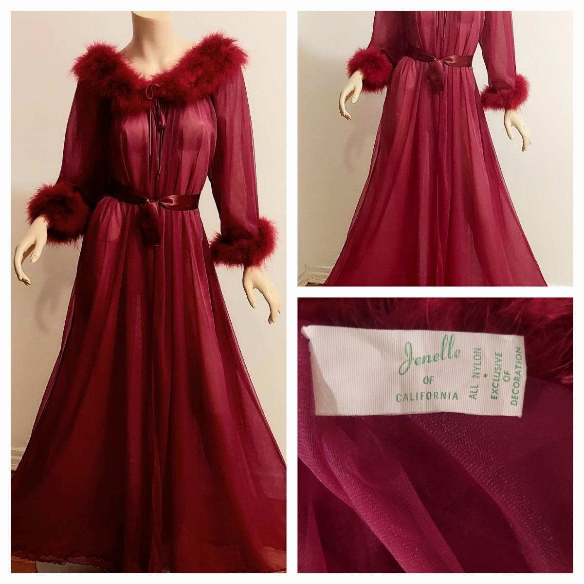 One one beautiful than the next. The Hostess Maxi gown has Marbou Feather by Janelleof California. Scarlet Ruby Red. Wit a Semi Hood.