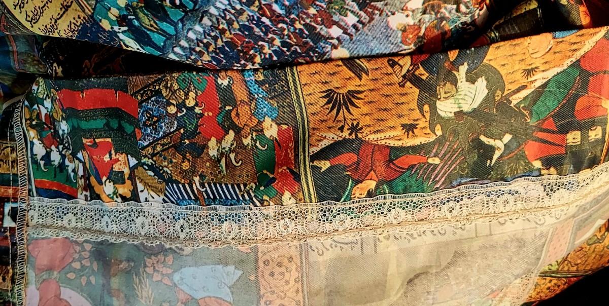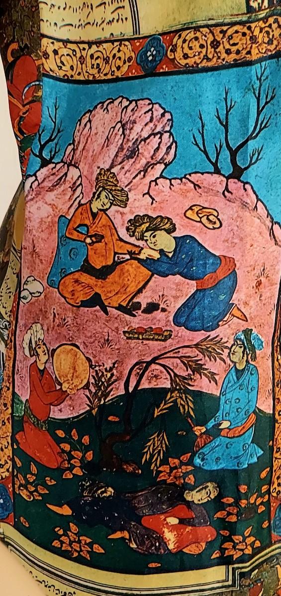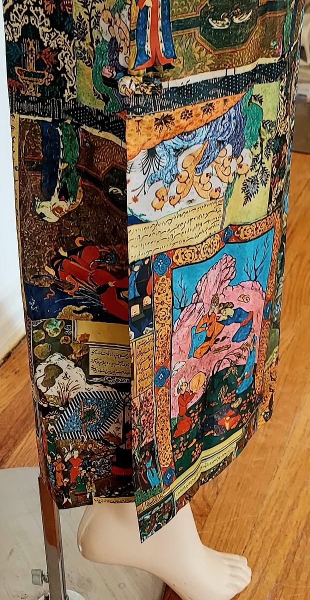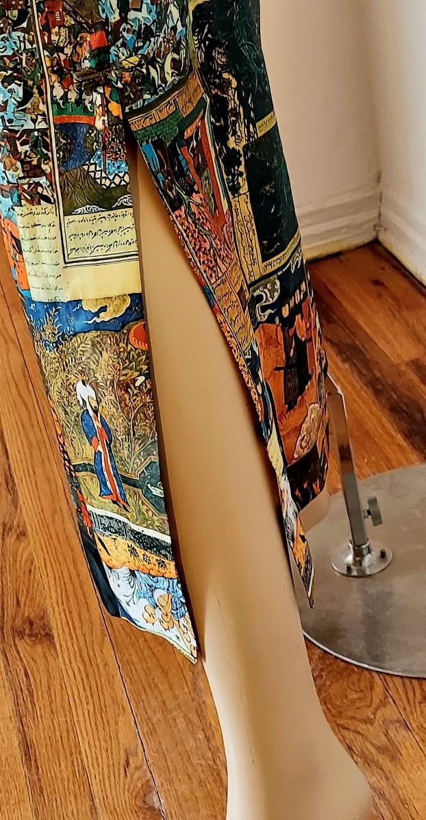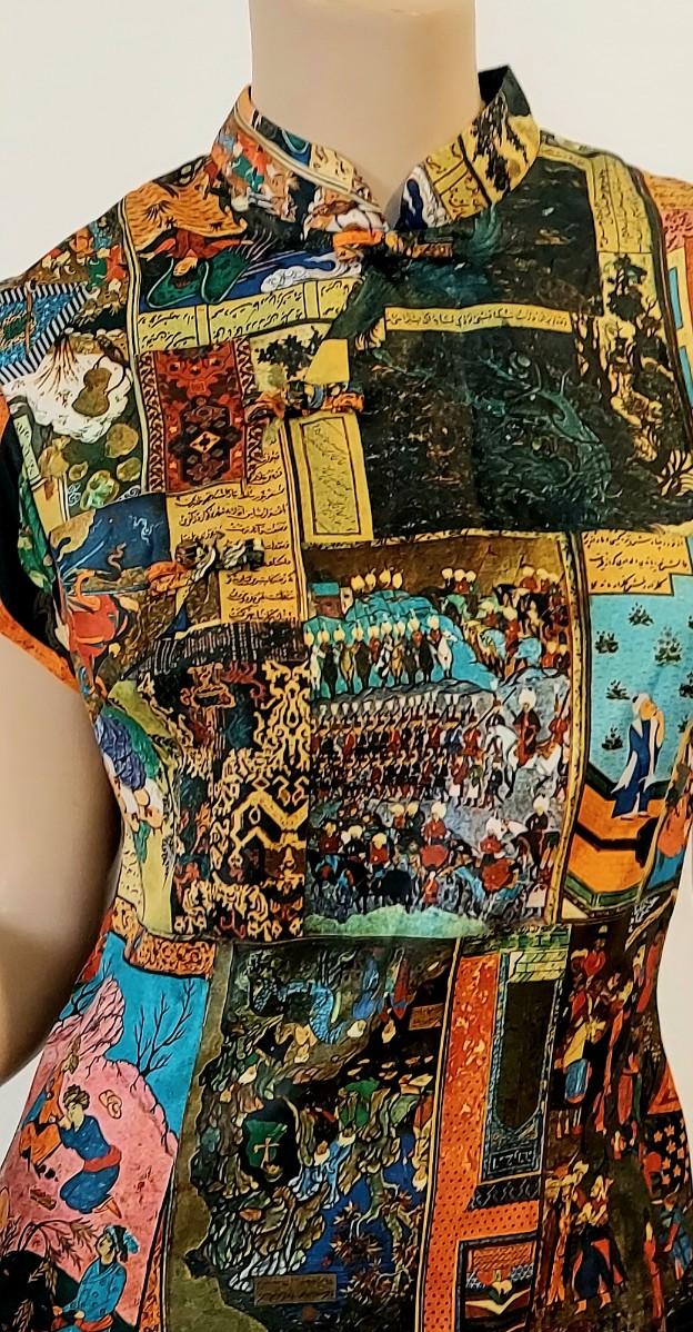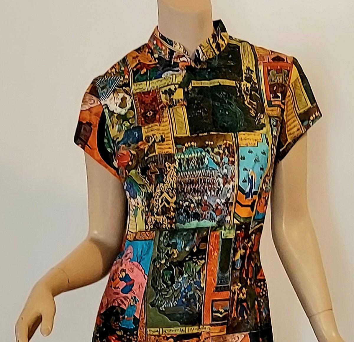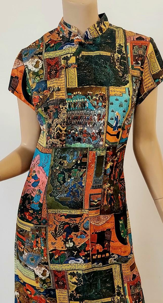 Rare timeless Maxi 60-70s Cheongsam Quipao dress by Waltah Clarke Patchwork Persian print in Amazing design