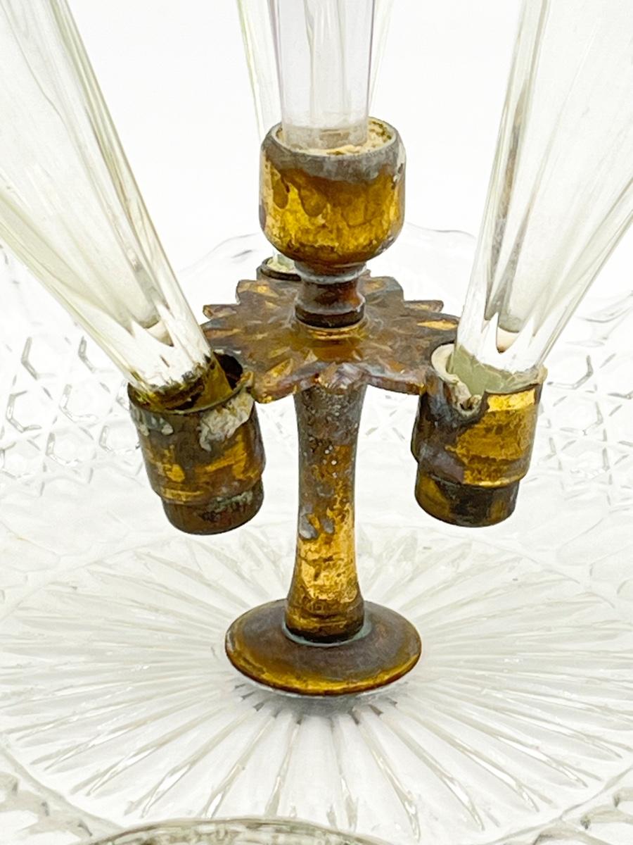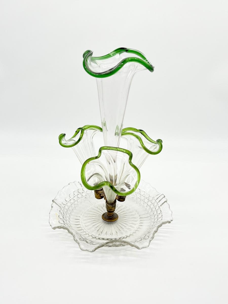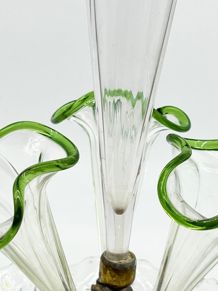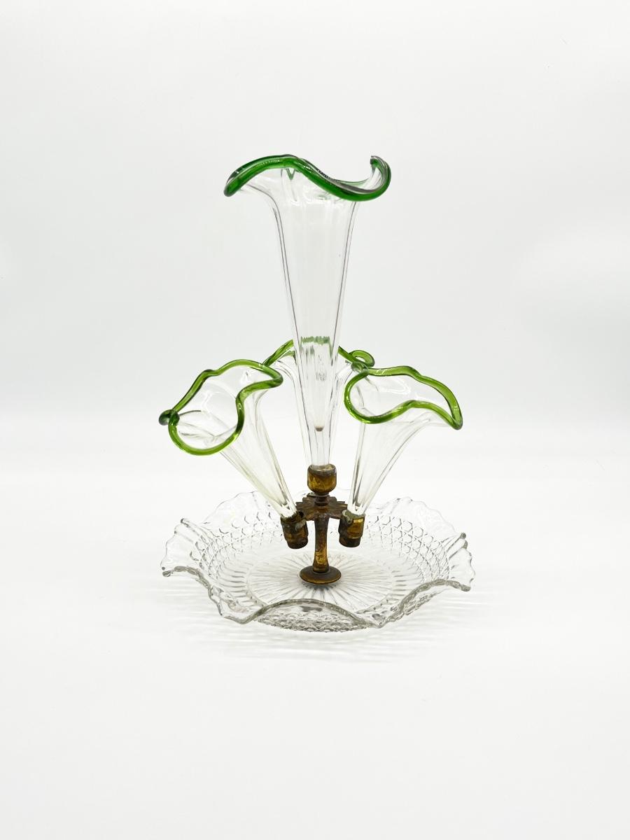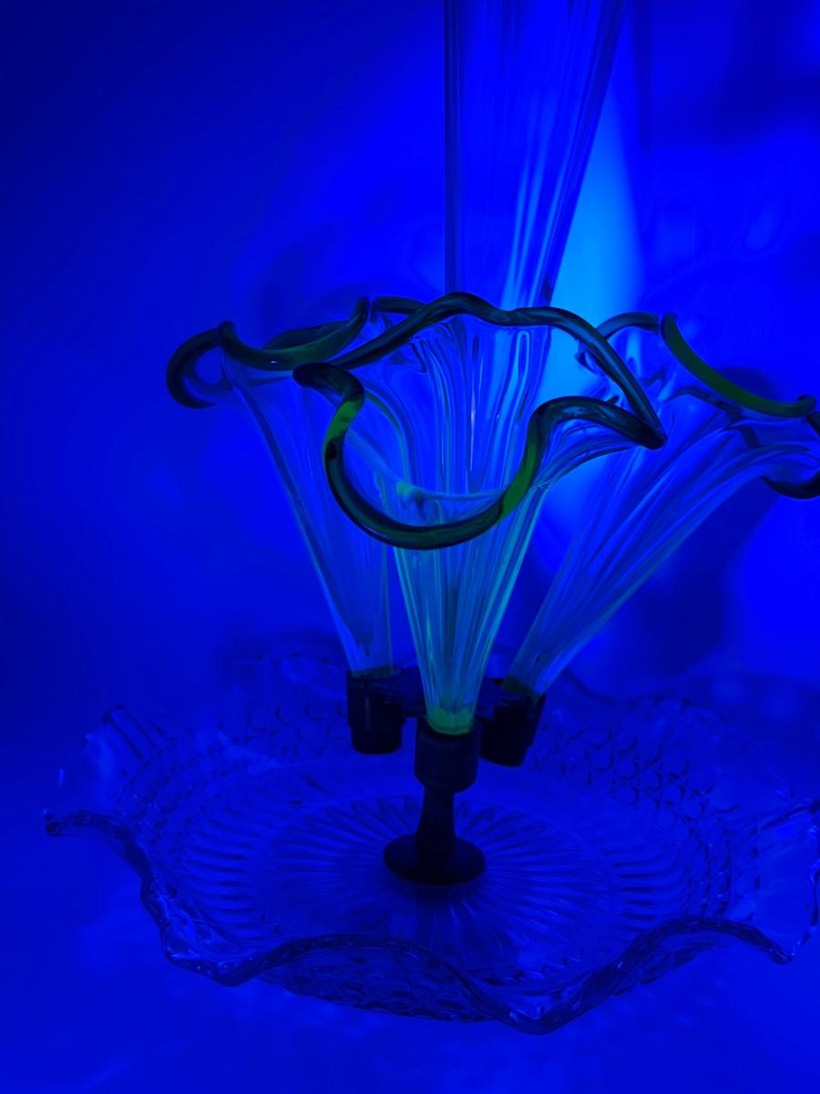 Vtg. 3 Trumpet Vaseline Glass Epergne