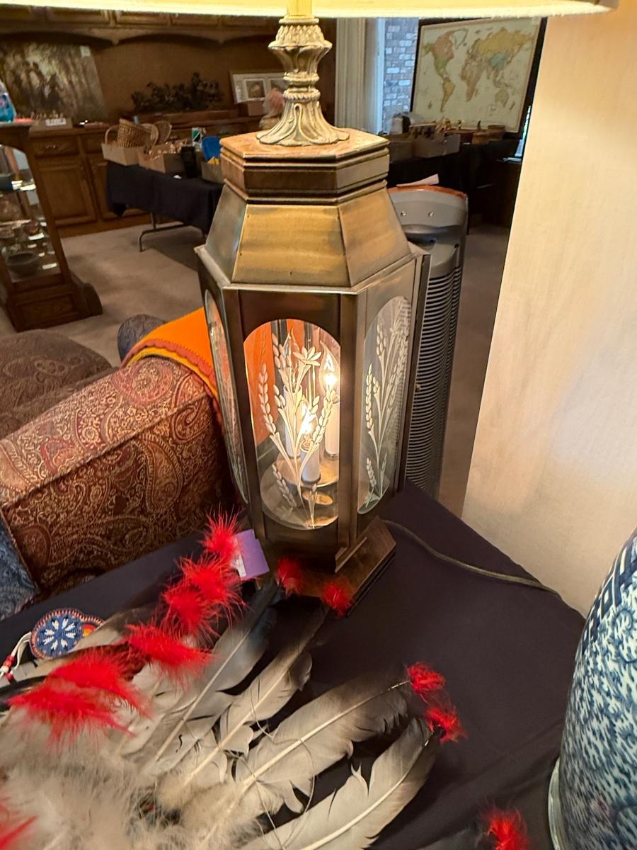 Vtg. 44”t Metal & Glass multi-bulb table lamp