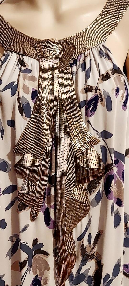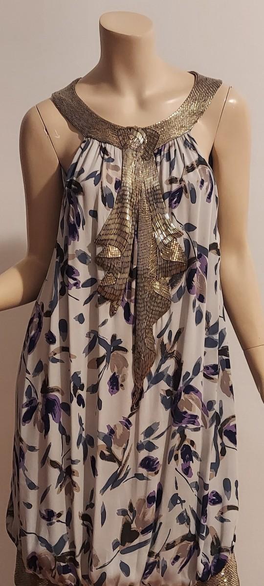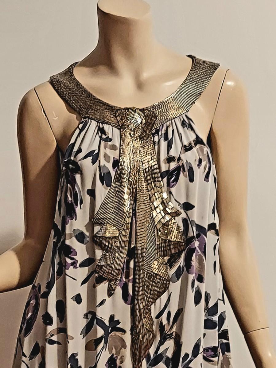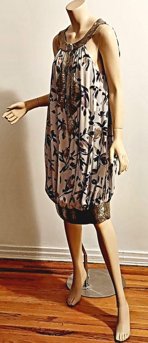 Stunning Missoni Orange label Silk Balayeuse dress with heavy silver bugle hand beaded bodice.dress inBlue/