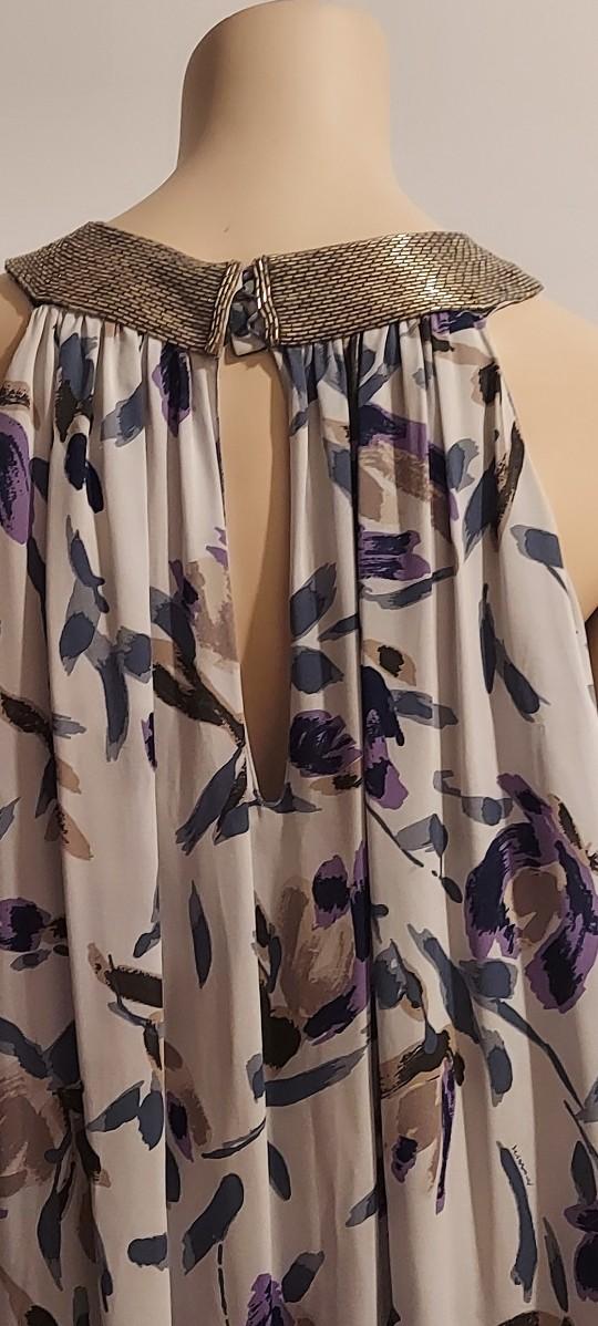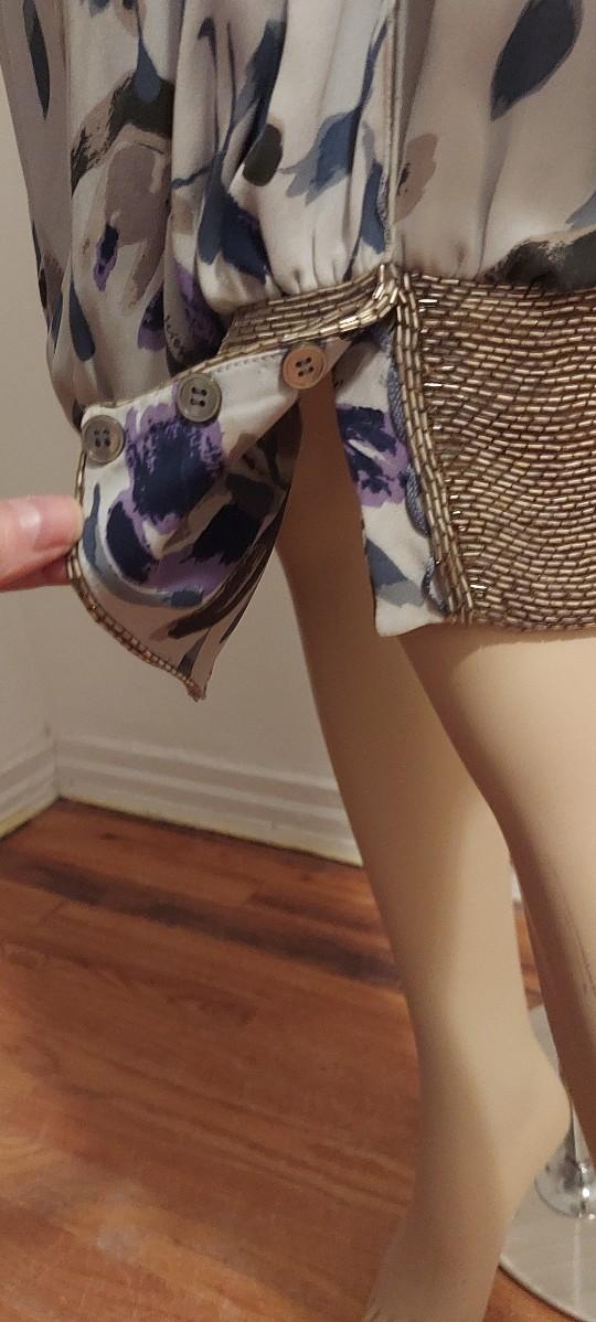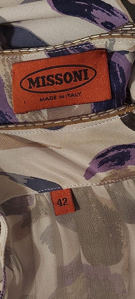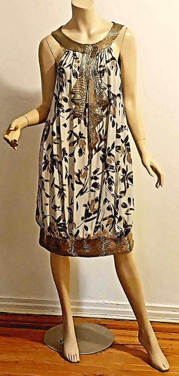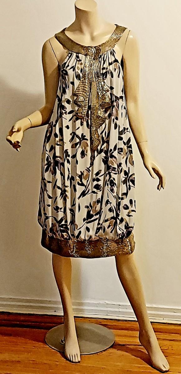 Stunning Missoni Orange label Silk Balayeuse dress with heavy silver bugle hand beaded bodice.dress inBlue/