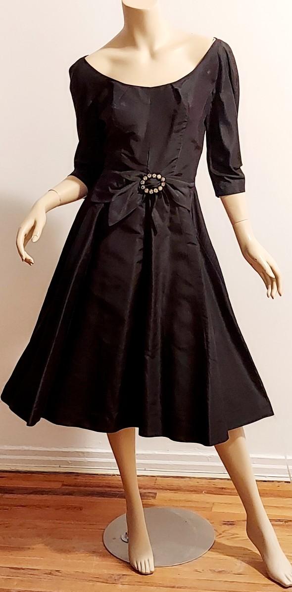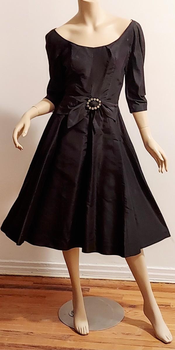 Vtg 50s Adele Simpson Demi Couture flare Shantung dress CrystalnBuckle