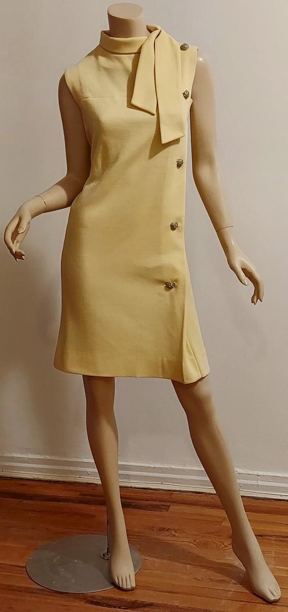 Vtg 60-70s Domani Knit yellow dress