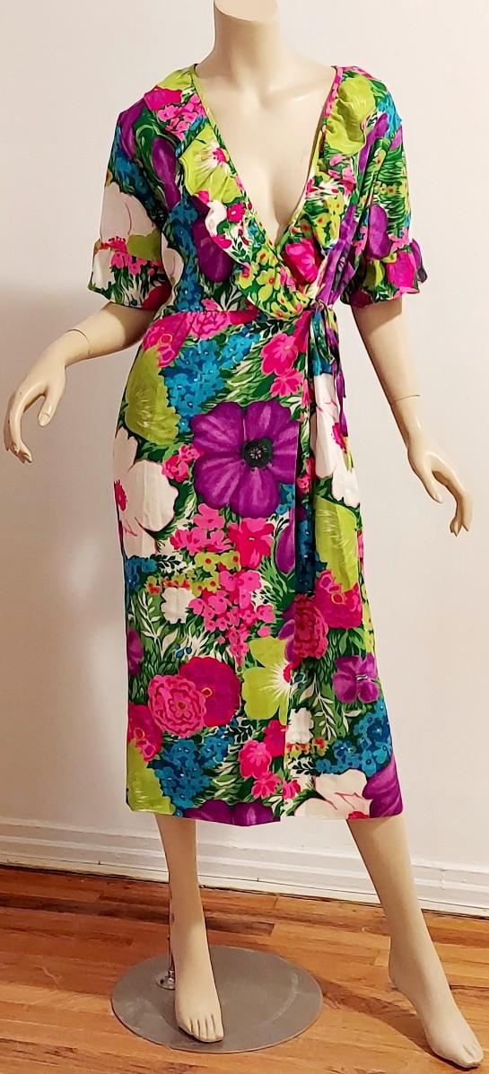 Vtg 60-70s Hawaiian wrap dress w/Ruffles