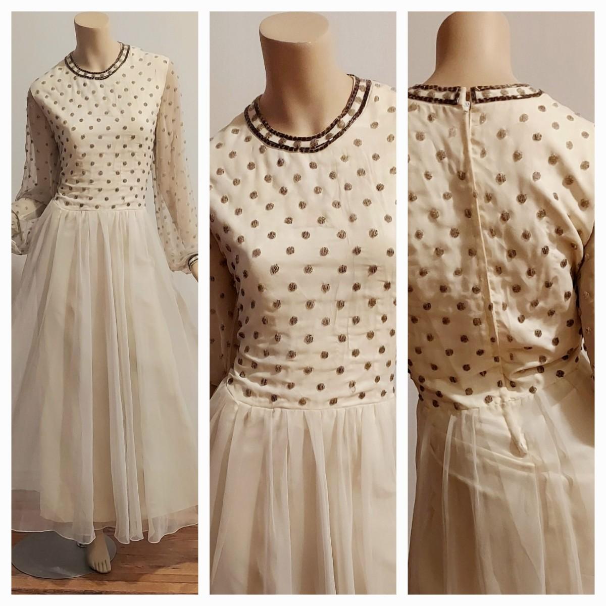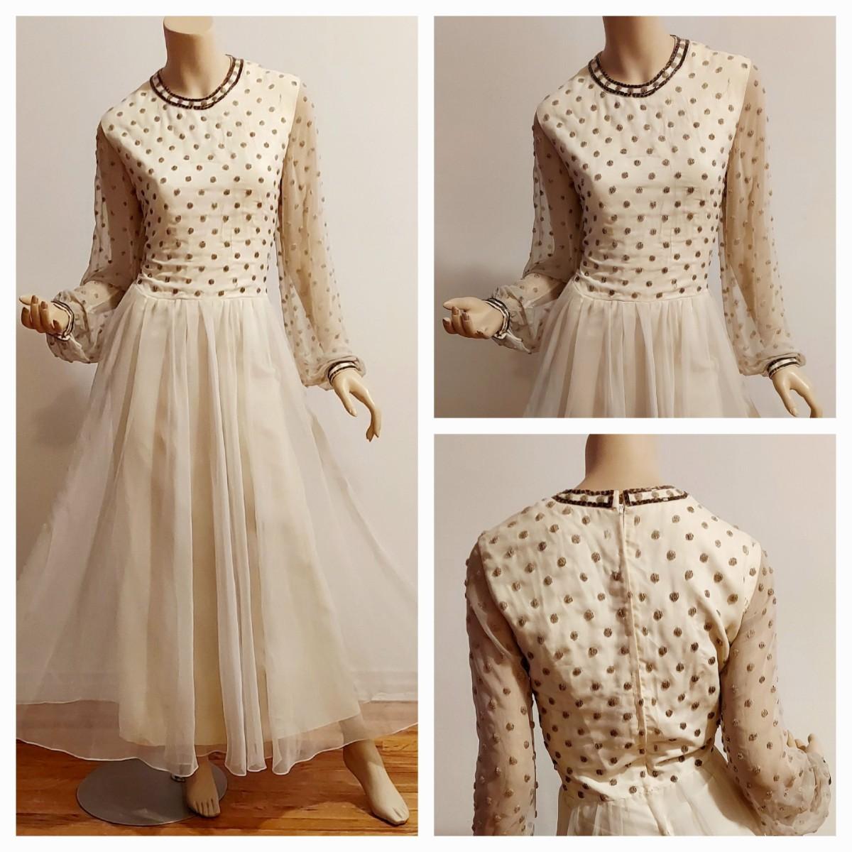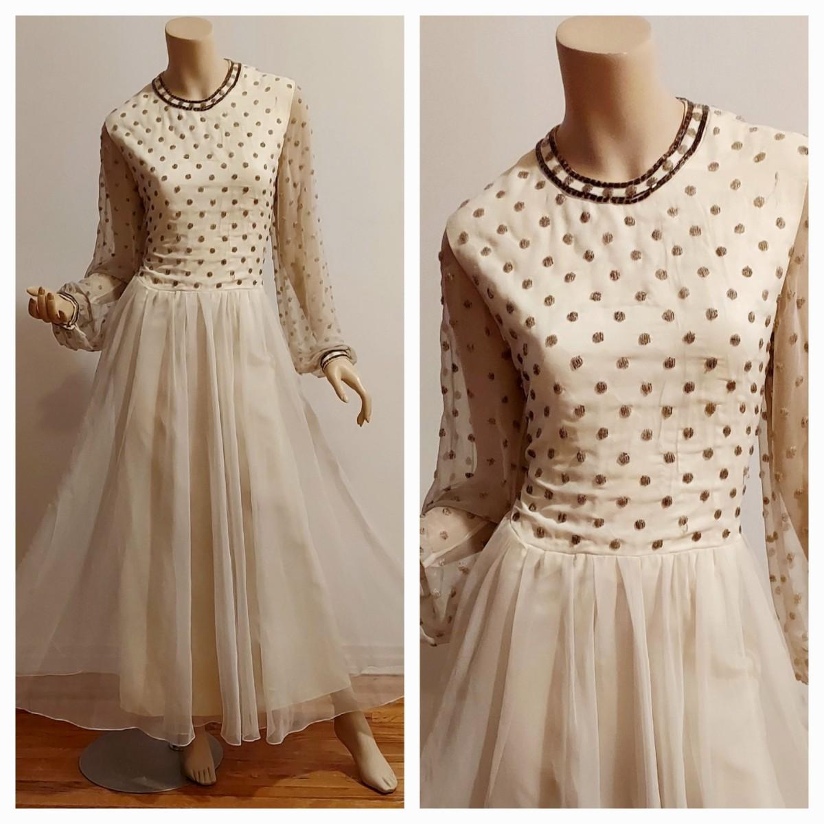 Truly Rare and an Amazing Beauties Both by Jack Bryan one is Full sweep Maxi chiffon with piet Sleeves Embellished all over with beads. This one is M/L
