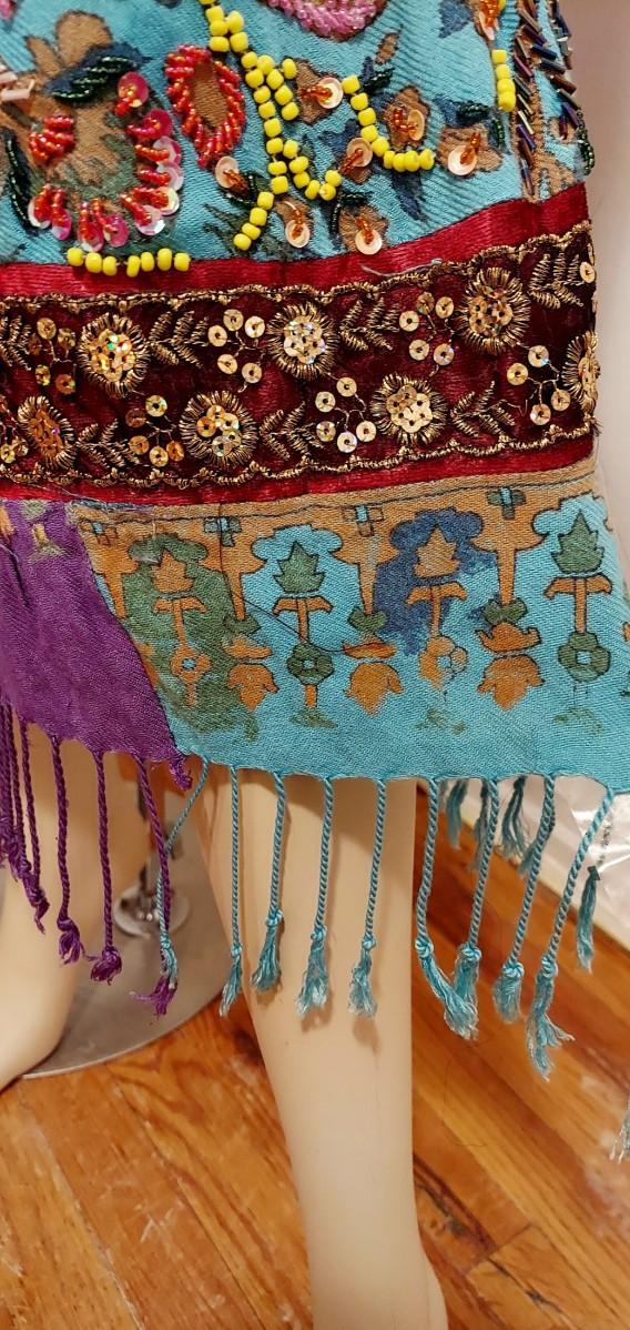 Vtg 60s Hand Painted Beaded Sequined Gold Embroidery Fringed Skirt