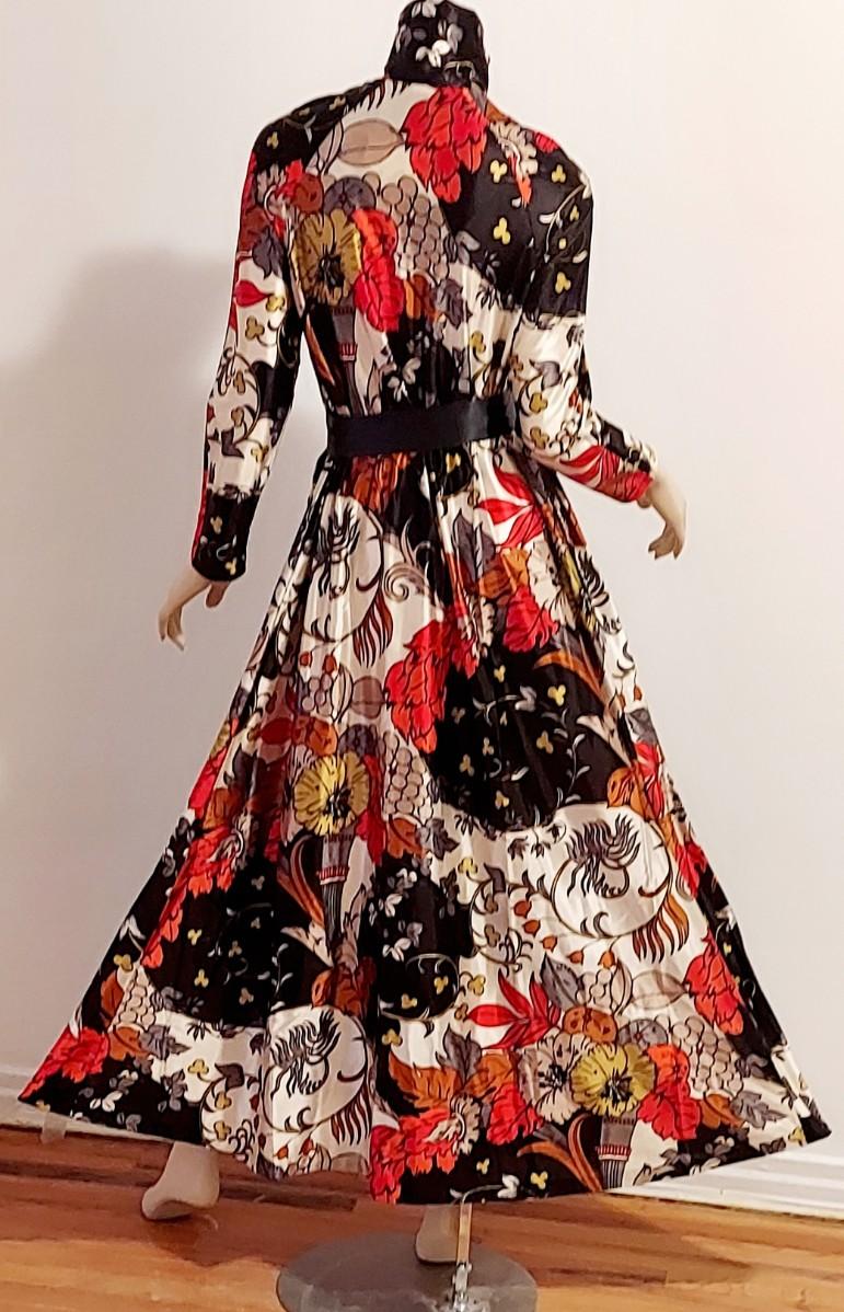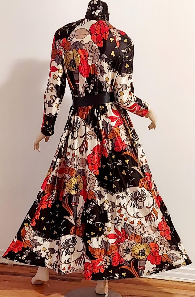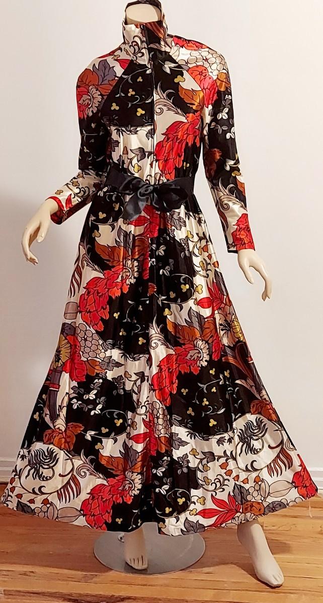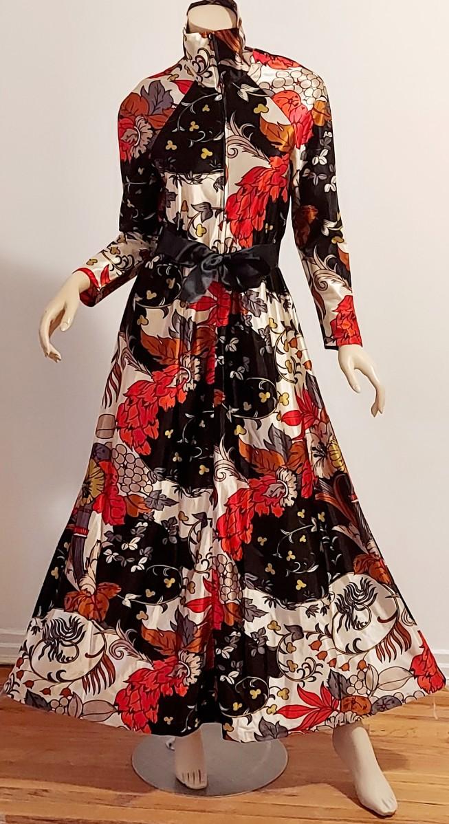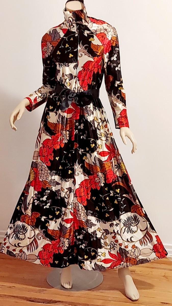 Vtg 60s Leisure Lady Novelty Hostess Maxi Dress