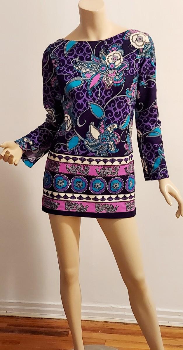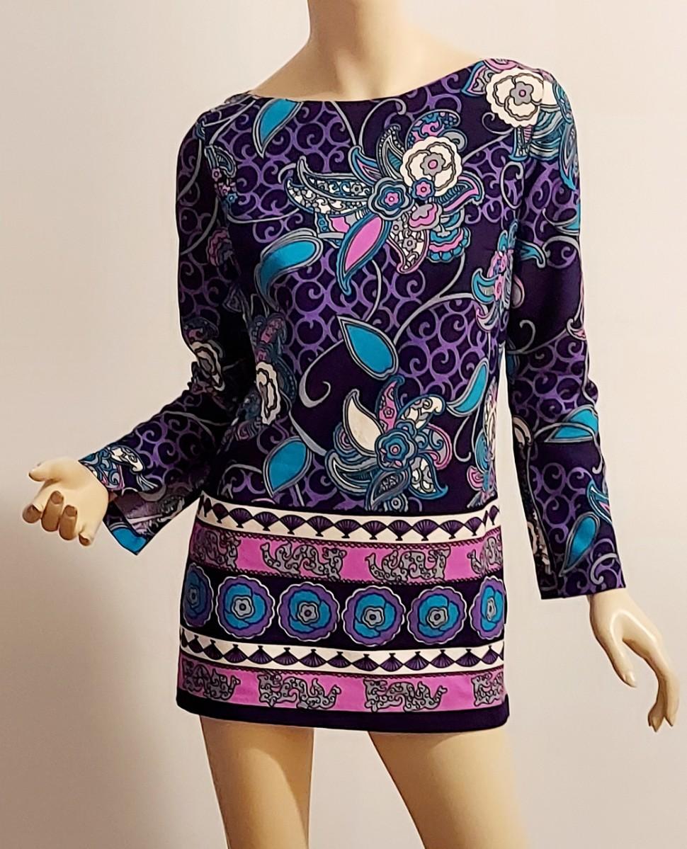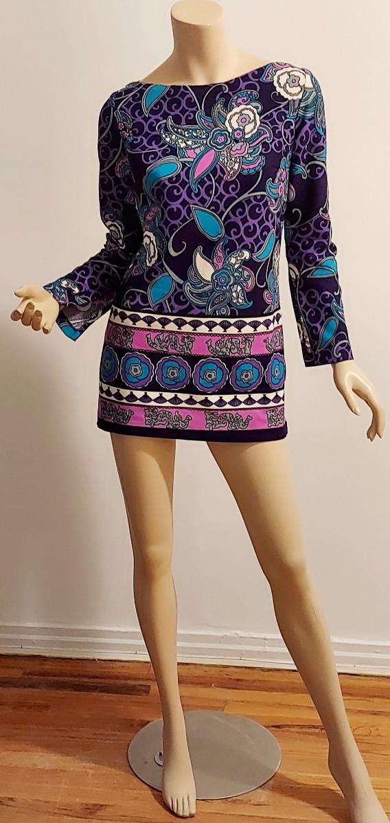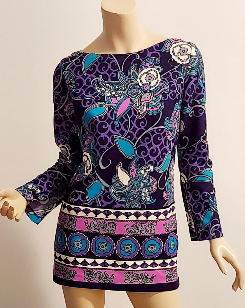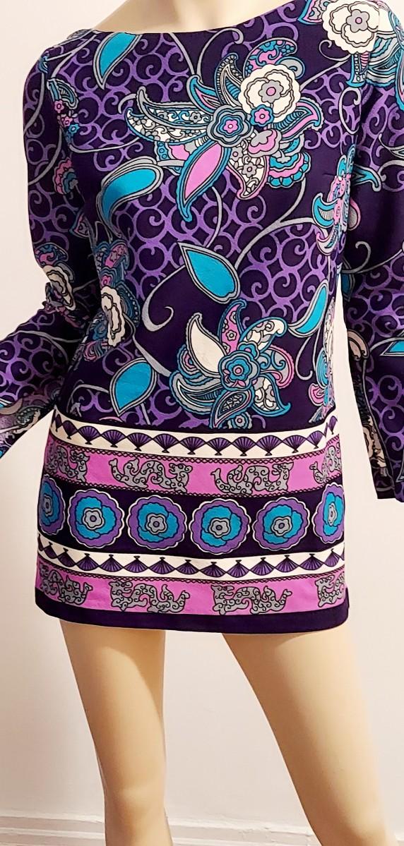 Vtg 60s Timeles Mini Blue/ Purple Hues side slitss