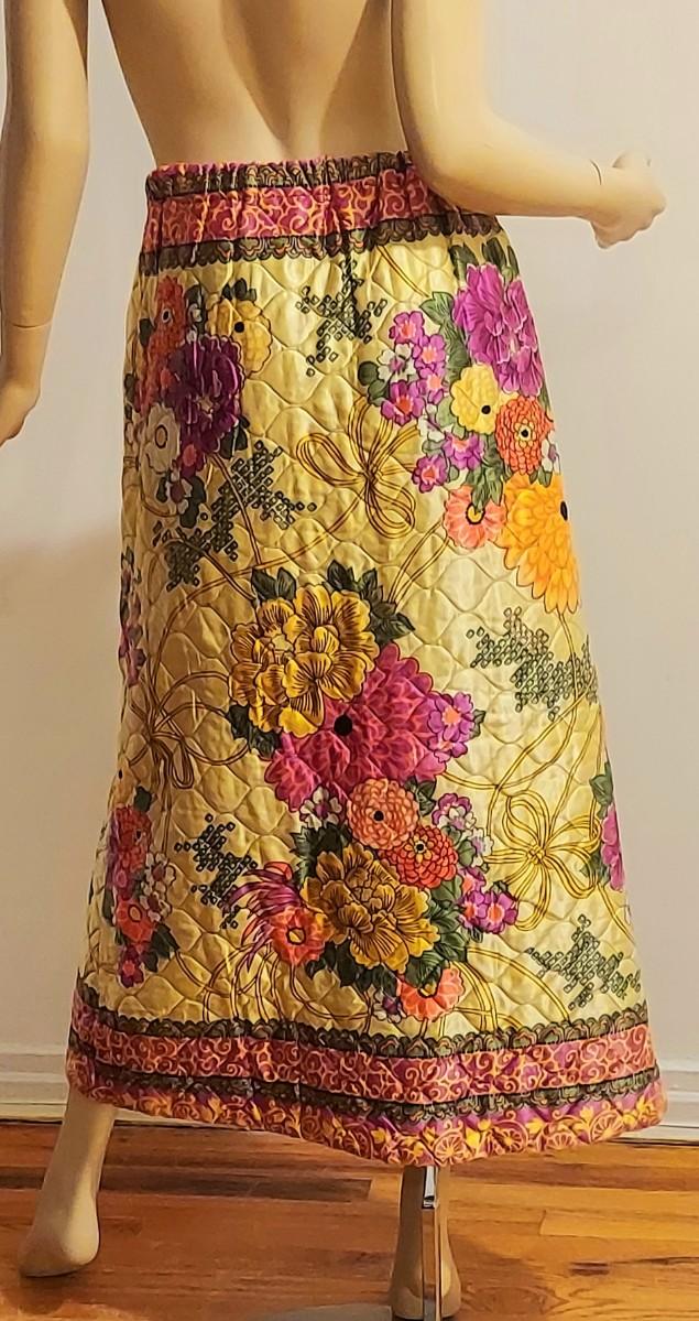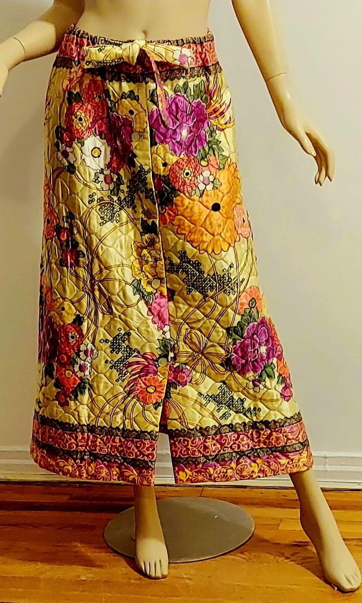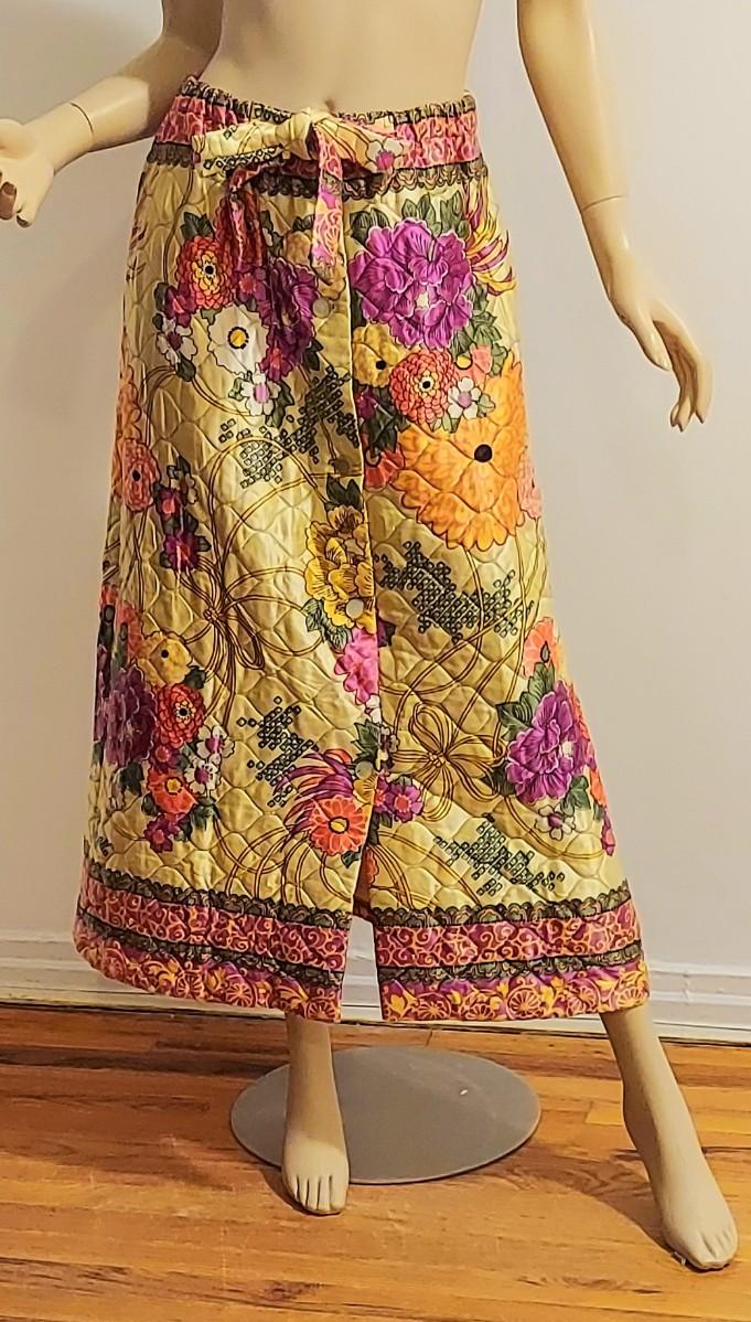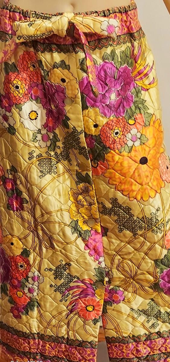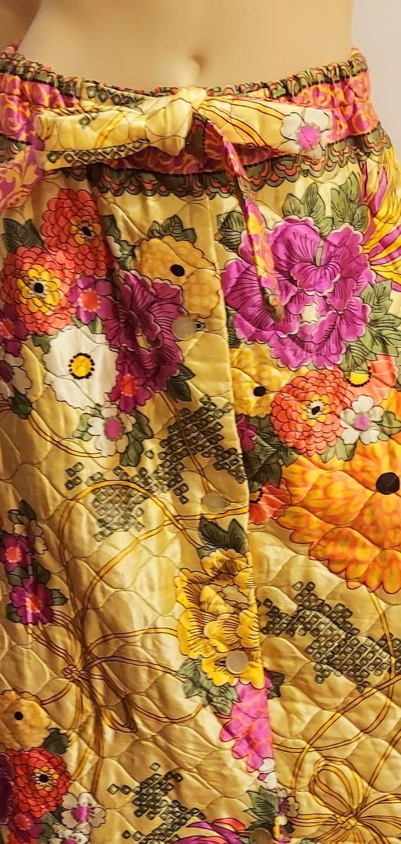 Gorgeous Maxi Quilted Skirt. Hand Printed Floral Design .in Amazing Colors and Design. Front pearlized Buttons and Sash