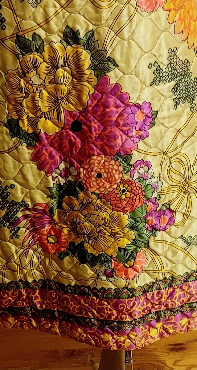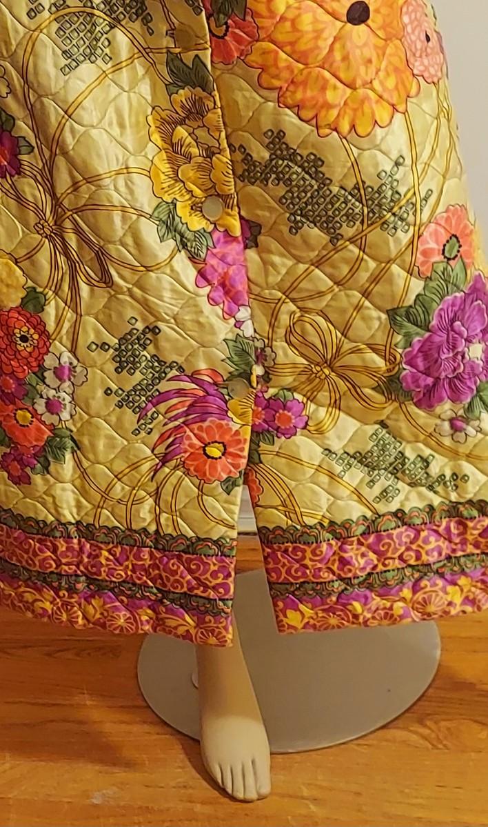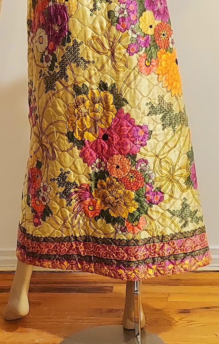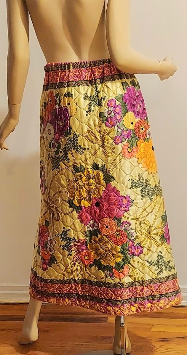 Gorgeous Maxi Quilted Skirt. Hand Printed Floral Design .in Amazing Colors and Design. Front pearlized Buttons and Sash
