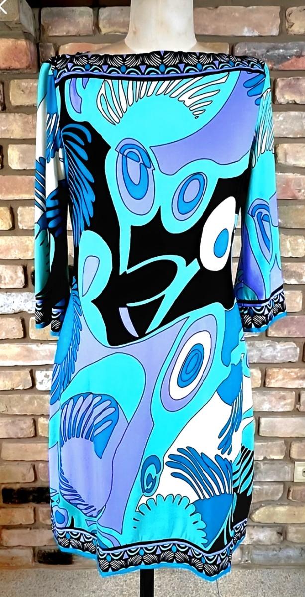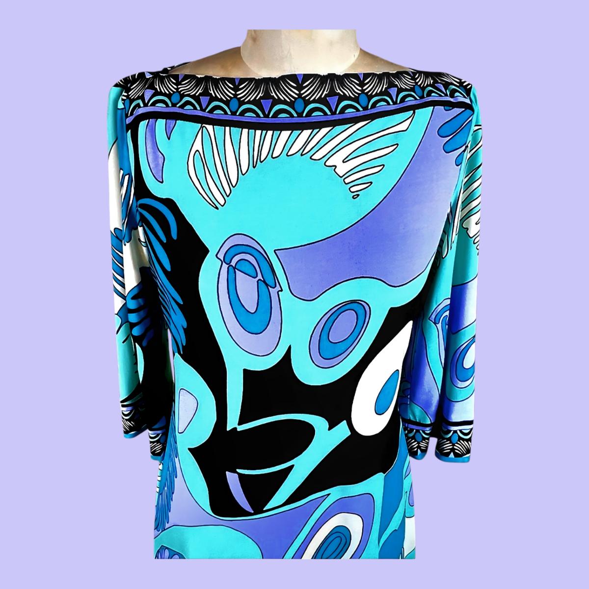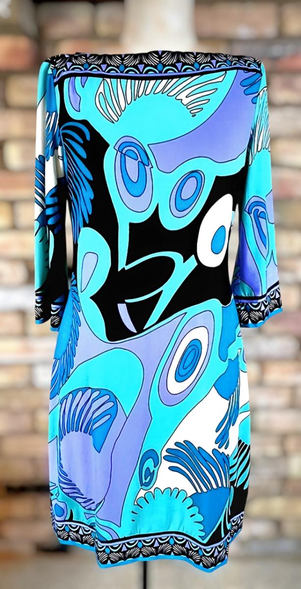 Y2K Stunner Pucciesque Psychedelic design dress y2k in Aqua/Purple