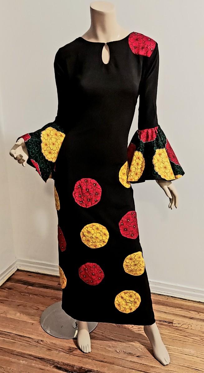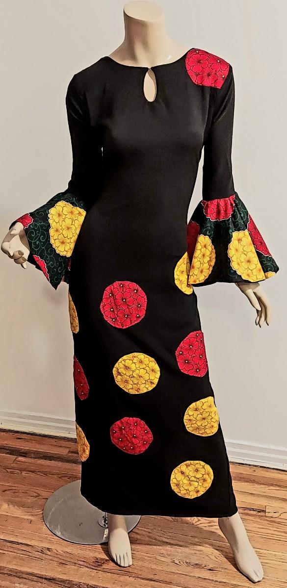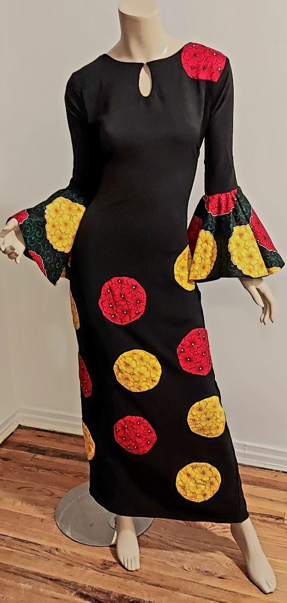 This one is a very Rare Dress and Very Beautiful .Victor Costa for Sakowitz Salon. Embroidered Appliqués of Chambray. Adorned with Rhinestones Throughout and Bell Sleeves .in very good Vtg condition .This one is a Collector's dream
