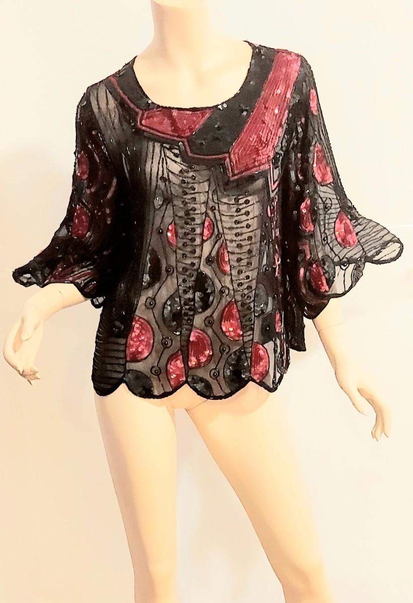 This one is absolutely Stunning Embellished w/ Sequins and Beads. In very good Vtg Condition. And very classy and Iconic