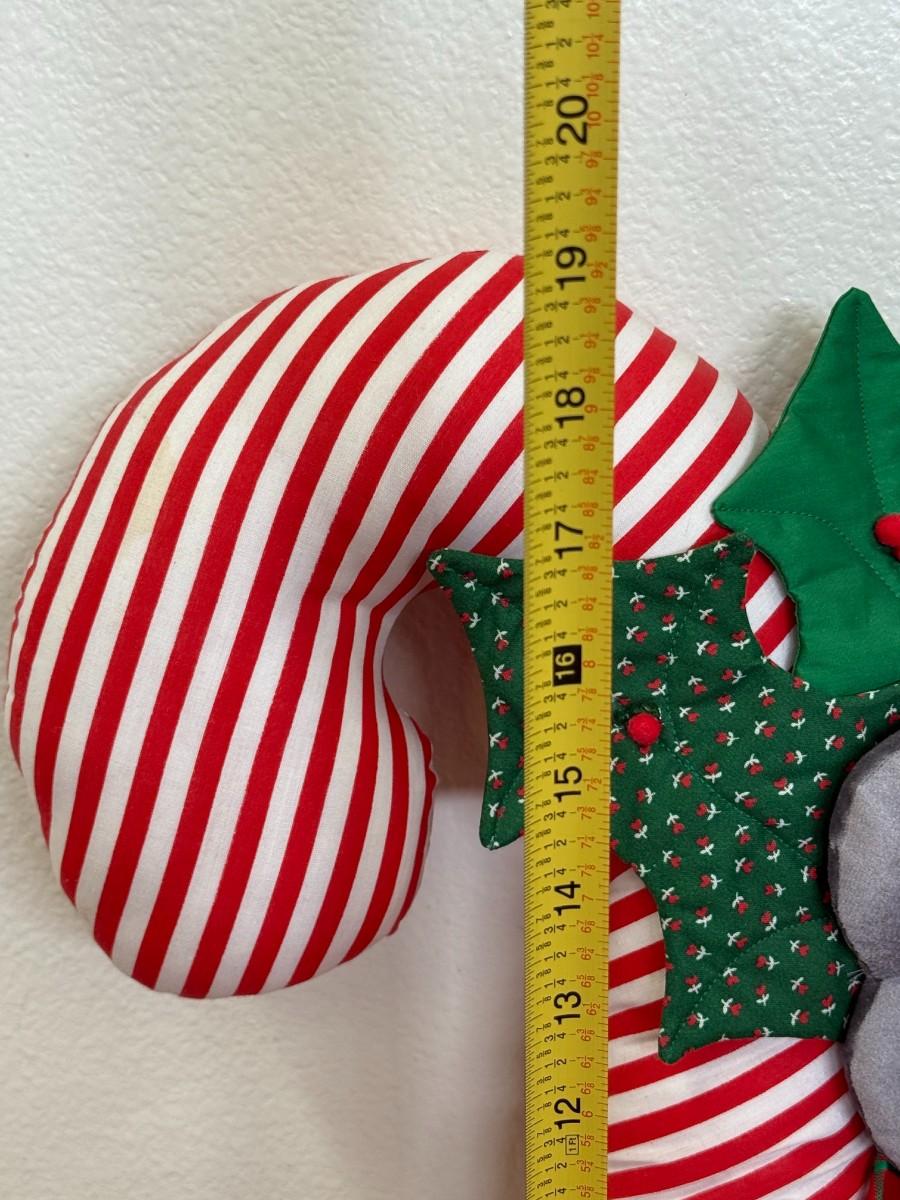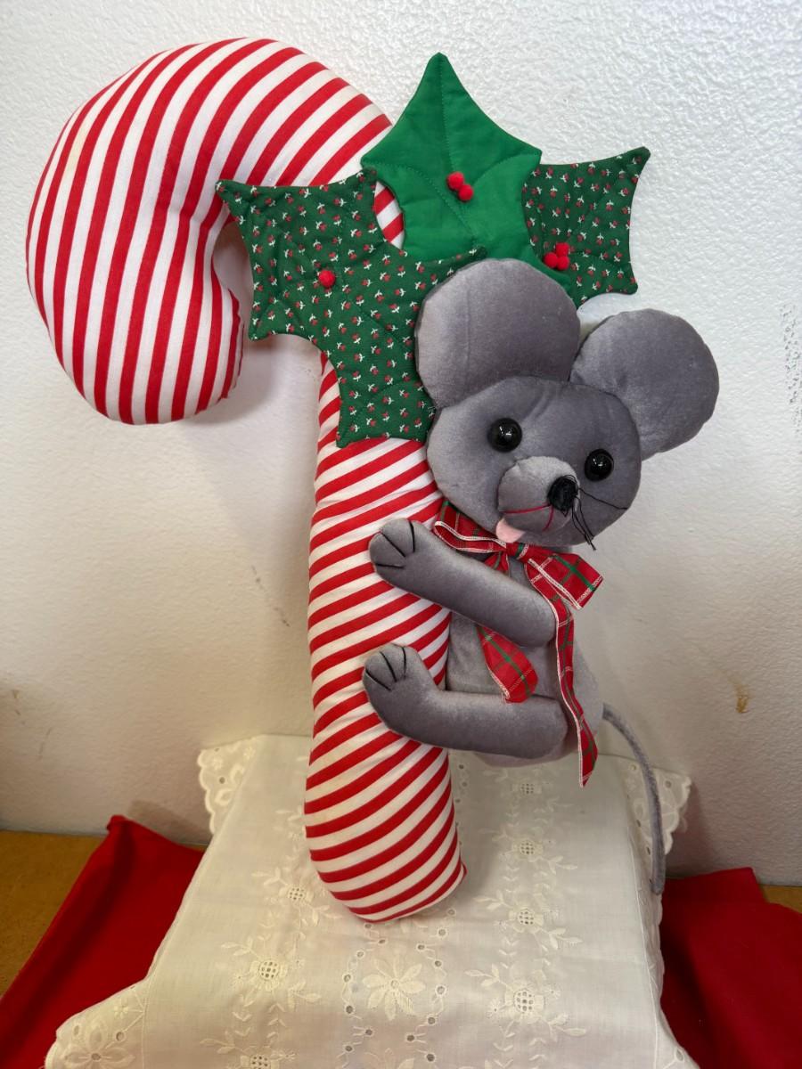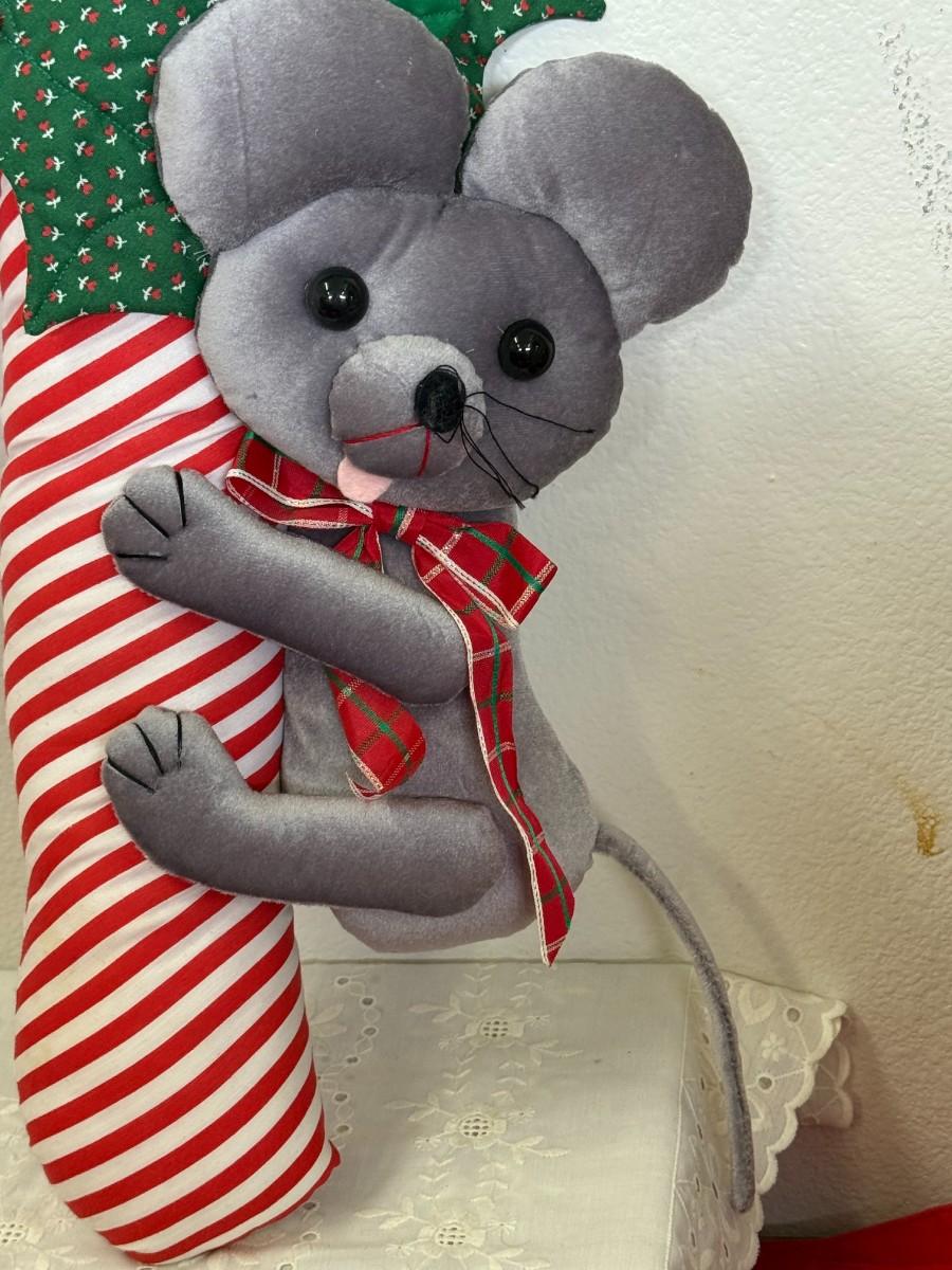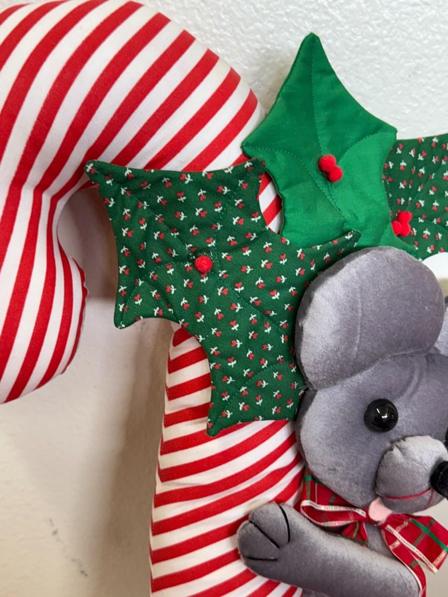 Vtg 80s Large Candy Cane Mouse Plush Decor Wall Door Hanging