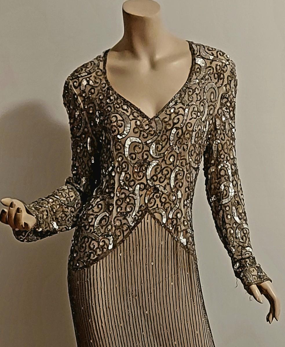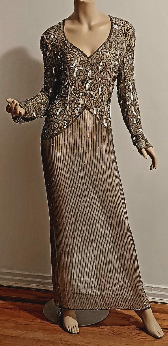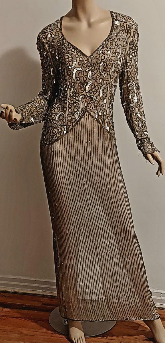This one is a Stunner from the Late 80s. Layering Maxi fully Hand Beaded and Sequined. In Amazing Vtg condition.