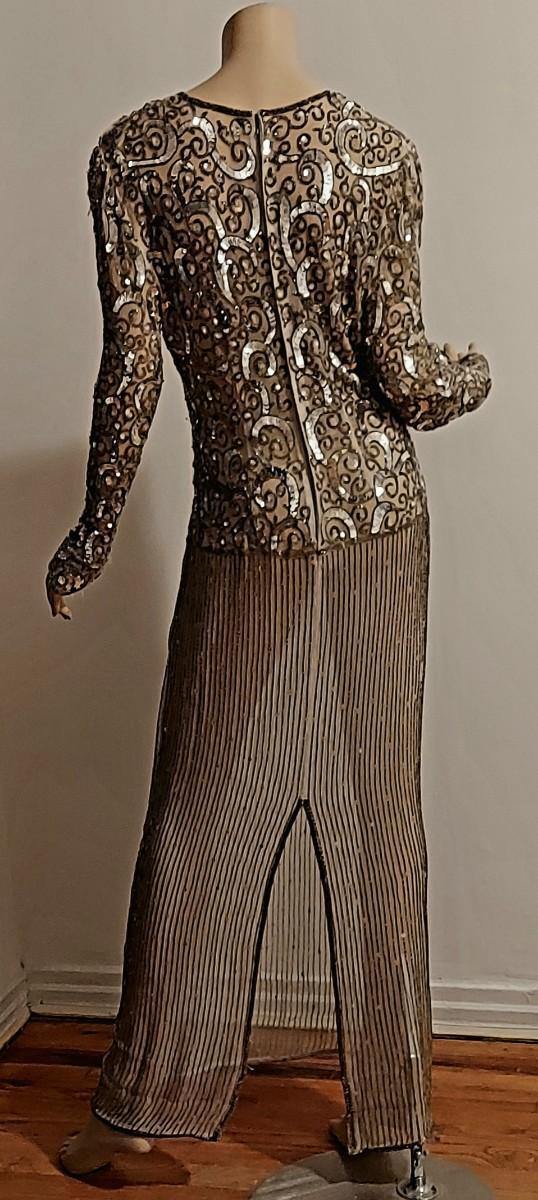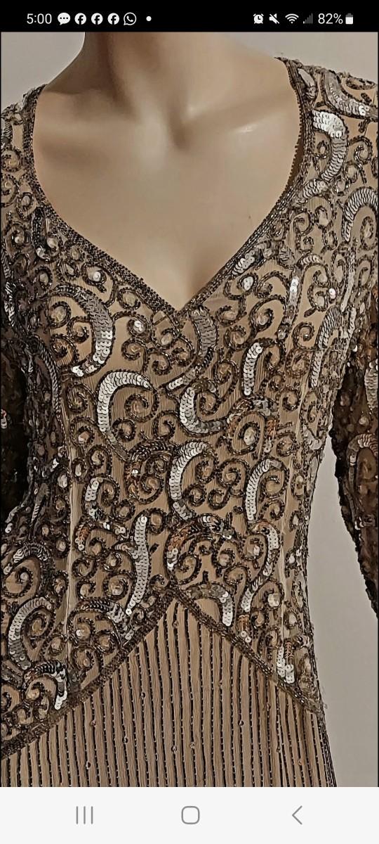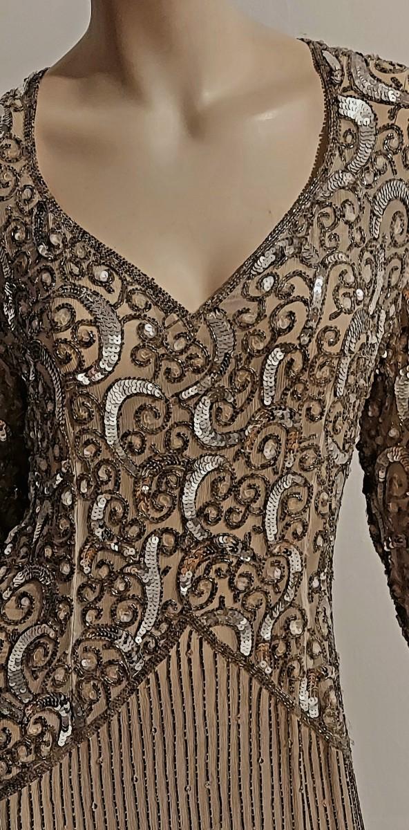 Vtg 80s Layering silver Grey Beaded maxi dress